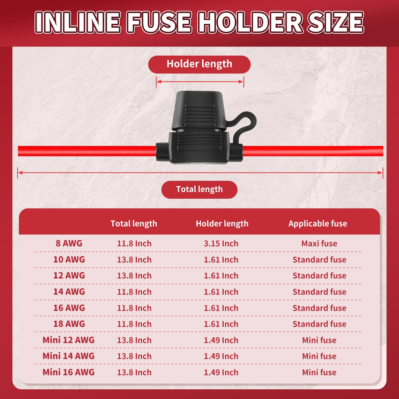 Xiogzaxi Inline Fuse Holder 12V Can Be Used For Automobiles, Boats, Golf Carts, Etc., Used For Extra Lights Or Circuits To Provide Extra Protection For The Equipment, Which Can Better Protect Circuits And Electrical Equipment, It Is The Best Choice For Diy Enthusiasts, Automotive Enthusiasts, Electricians And Other People. Reusable The Fuse Of The Blade Fuse Holder Is Replaceable, If You Need To Replace The Original Fuse, Just Open The Cover Of The Box, Remove The Original Fuse And Insert The New Fuse To Use It. Pvc Material The Surface Of Automotive Fuse Holder Has Good Flame Retardant And Wear Resistance, Durable And Long Service Life. Multiple Choices We Will Offer You Multiple Sizes Of Marine Inline Fuse Holder, There Are 18/16/14/12/10/8 Awg 6 Different Sizes, There Are Mini/Standard/Maxi 3 Different Models, Which Will Save Your Time. Tips The Product Size Is Measured By Hand, Please Allow 1-2Mm Error. Please Check The Size Of The Product When Purchasing To Make Sure The Product Meets Your Usage Needs. 8Awg Is Suitable For Maximum Fuse Holders, Not For Standard Fuses, Miniature Fuses, Ato Fuses And Atm Fuses.