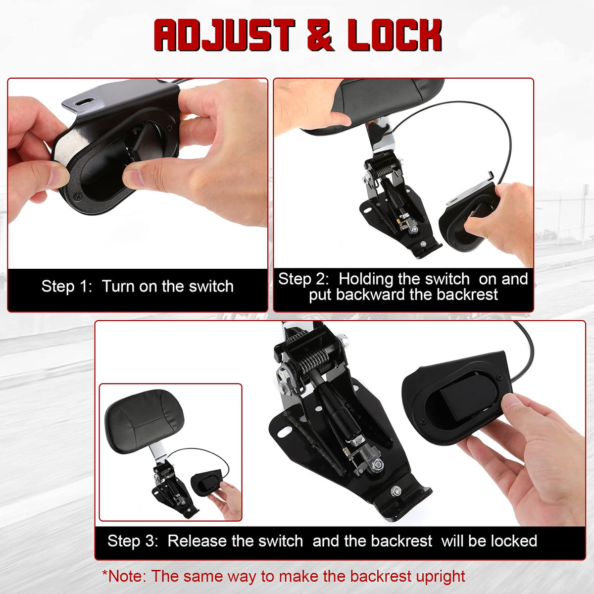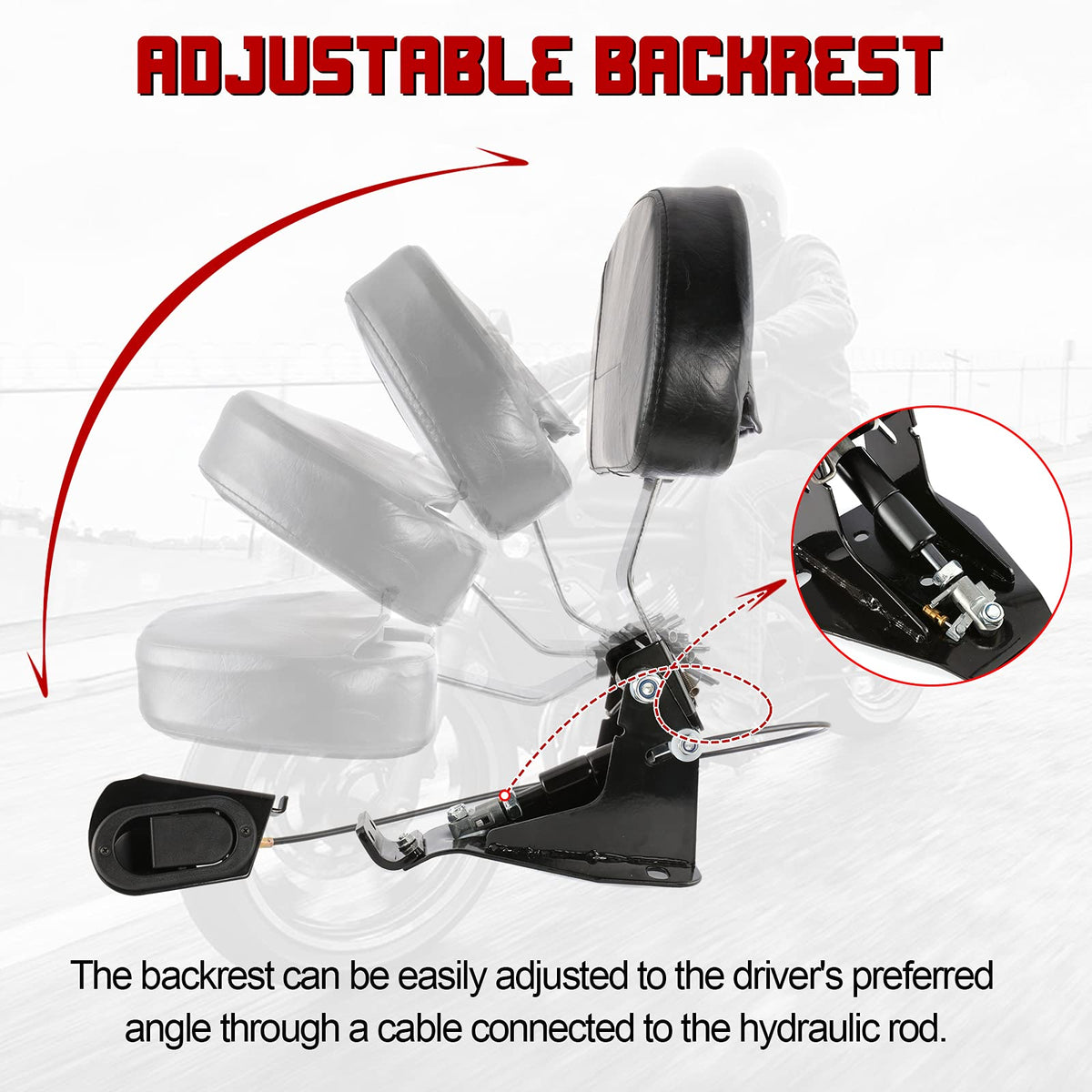 Innoglow Motorcycle Adjustable Driver And Rider Backrest With Chrome Mounting Kit For Harley Touring Electra Glide Road King Str