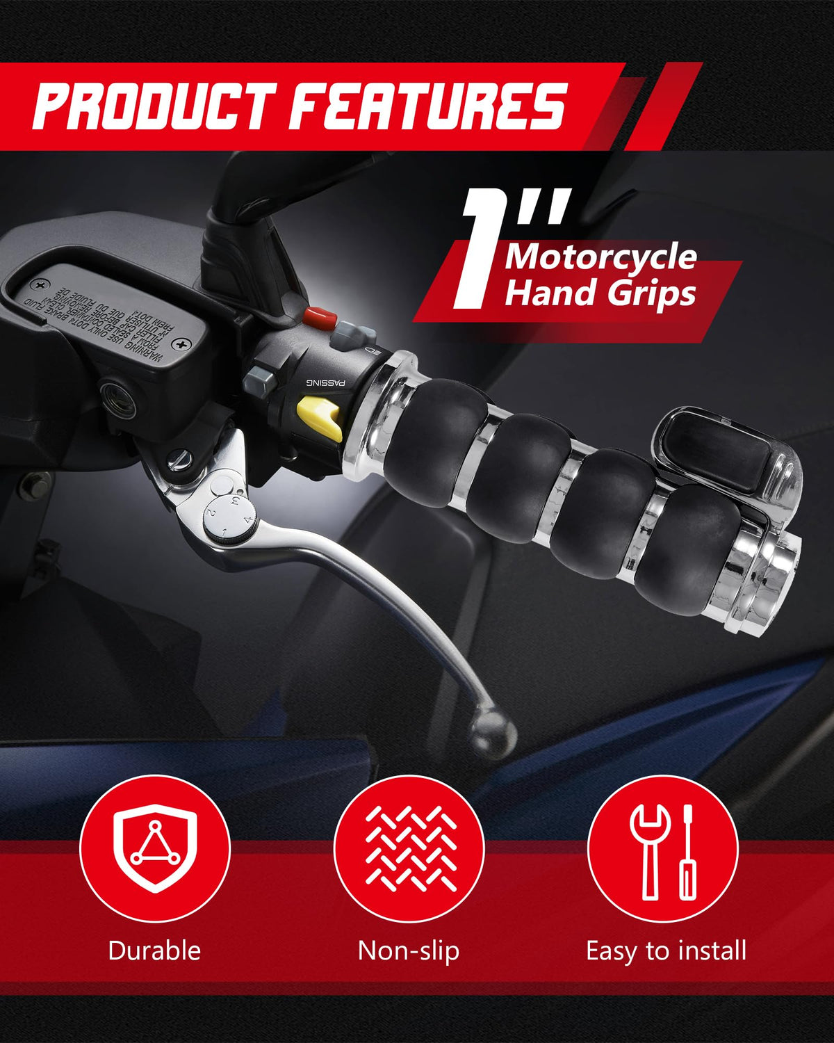 INNOGLOW Motorcycle Hand Grips 1 Custom Chrome Billet Aluminum Bar End Cap Handlebar Grips for Suzuki Kawasaki Harley Cruiser