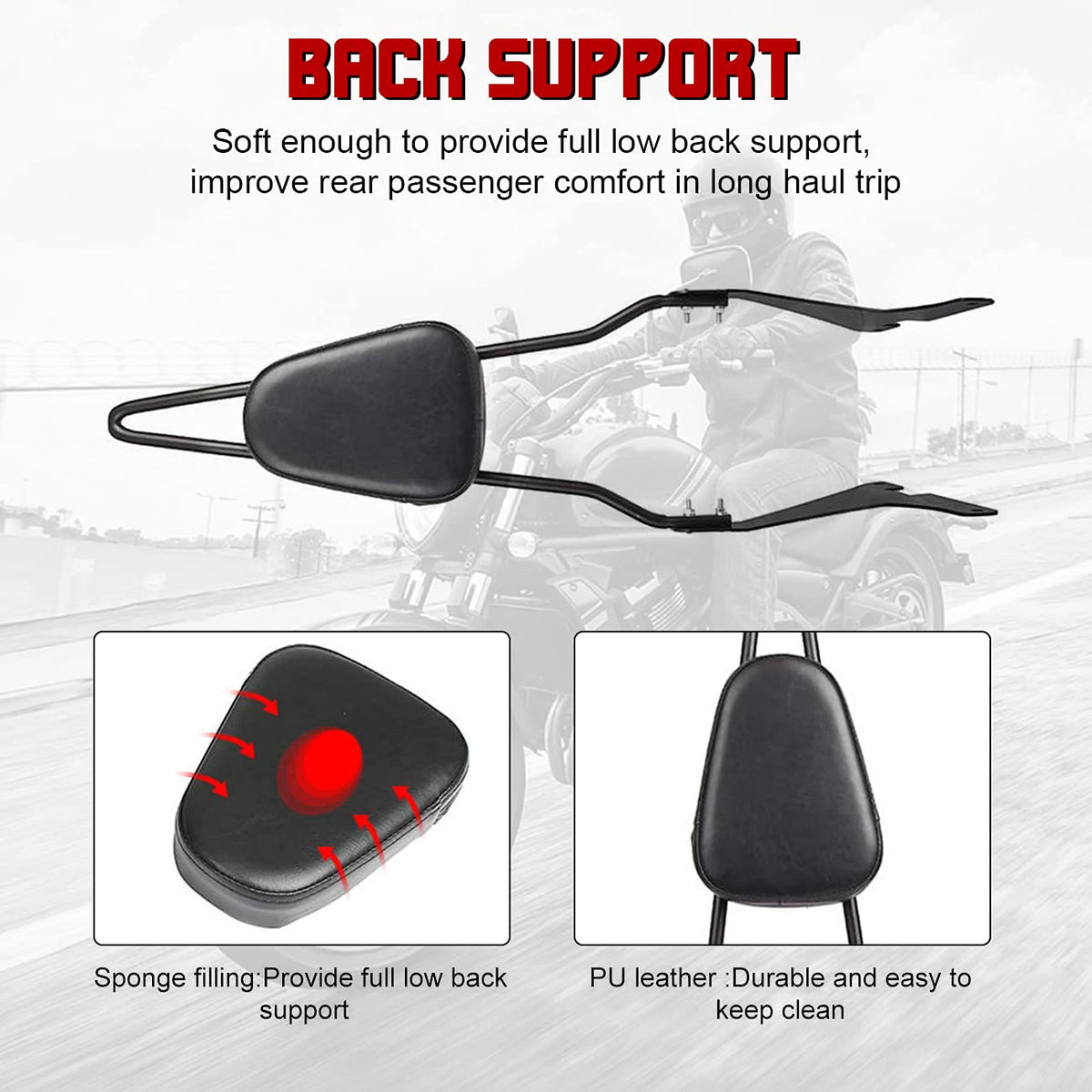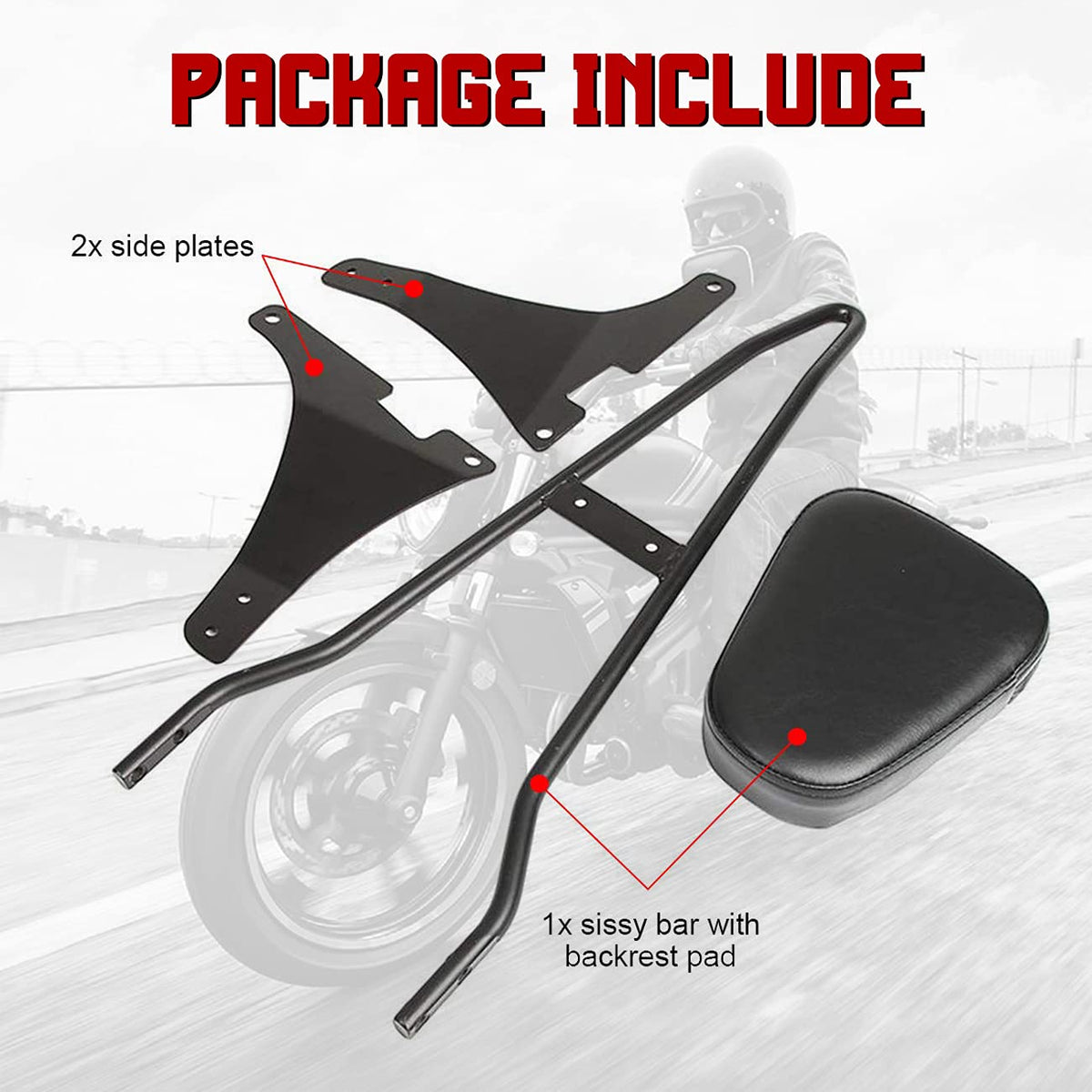 Fitment: Fits Har ley Davidson sportster models (2004-later), such as XL 883, XL1200 Separately purchase of docking hardware kit is required (except XL 1200T models) Color: Matt Black Backrest Pad Material: PU leather+sponge filling, metal stand Sissy Bar Material: solid iron metal Instructions: not included Aftermarket Rear Passenger Detachable Sissy bar backrest pad kit Improve rear passenger comfort in long haul trip Package Included: 1x sissy bar with backrest pad,2x side plates Necessary mounting hardware,like bolt,washers included