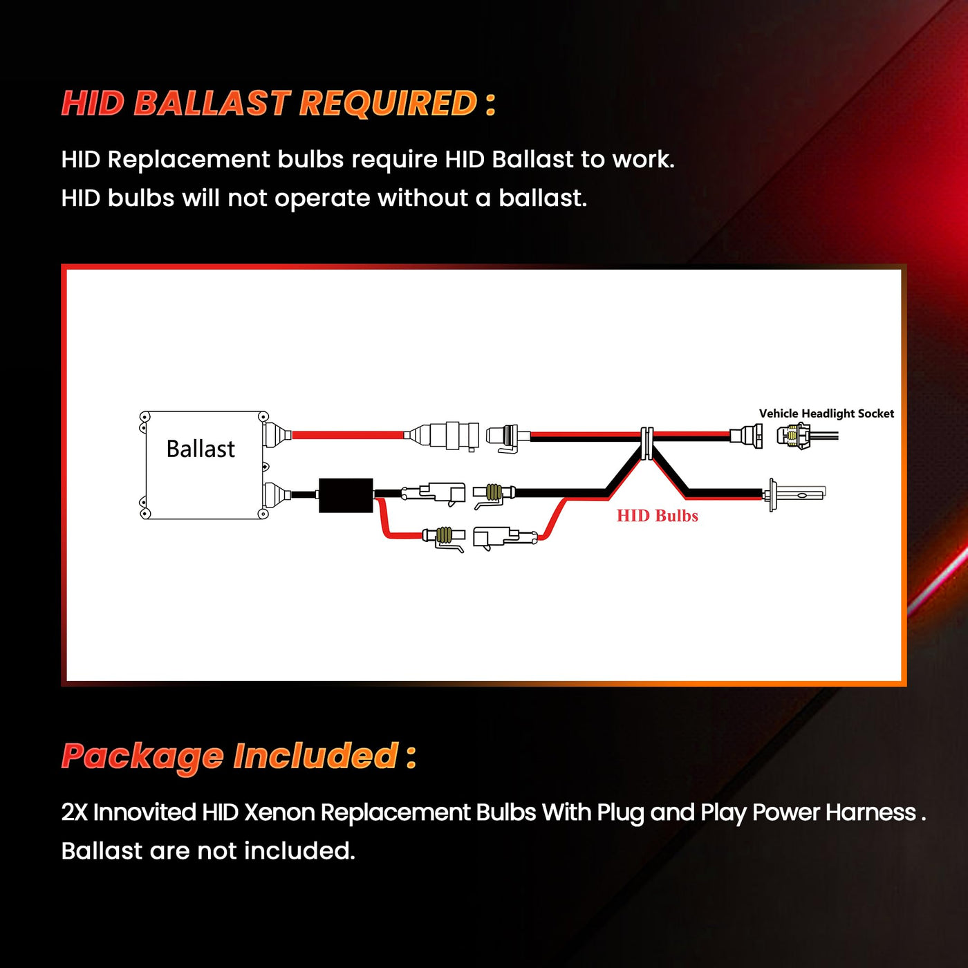 HID Replacement bulbs require HID Ballast to work. HID bulbs will not operate without a ballast.FITMENT GUIDE: Please read the fitment notes above to verify if the selected bulb size is for Low Beam, High Beam, or Foglight. Please contact us to verify bulb size if you are unsure.
