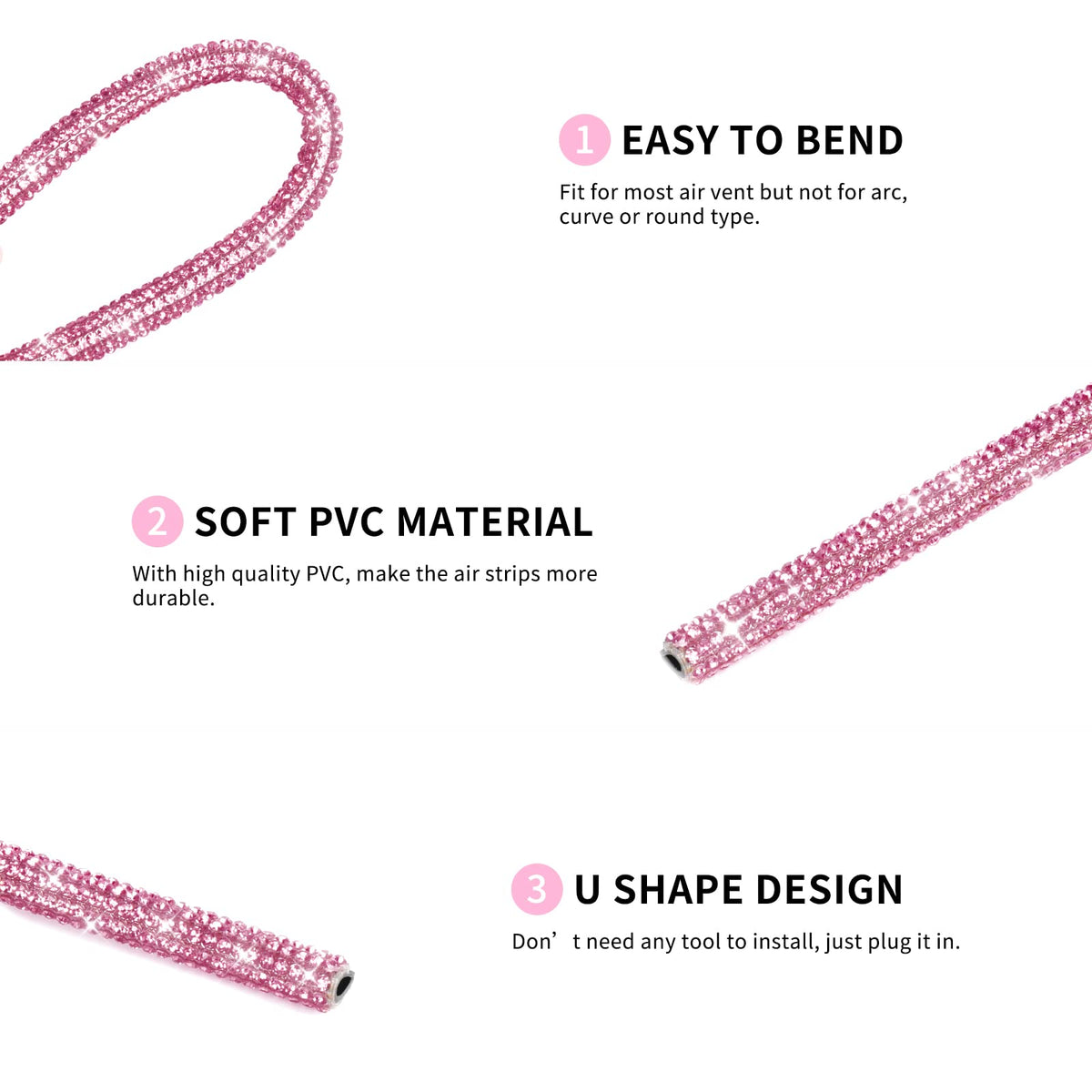 Perfct Car Decoration--Bling car vent outlet Trim Bling bling car air vent decorative strip is specialized for car vent decoration, which is made of soft PVC material and shinny rhinestone, durable and glitter.How the small thing, makes a big difference.About the installation,its so easy to install.You just use scissors to cut them to size and slide over vent. Once they are on they do look great and amazing! Our bling car accessories enjoy great popularity among women and girls,is also a perfect festival gift for your lover,mother and friends. Come and Go with rhinestone bling car accessories, make your car to stand out a bit! Package Include: ?10pcs bling car vent outlet trim High Quality Material: ?Durable PVC Material and Sturdy Rhinestone Color: ?White Rhinestone and Multicolor Rhinestone Product Dimension: ?3.74in each piece Easy installation: -1.Measure the length -2.Use scissors to cut them to size -3.Insert a U-shaped clip into the air outlet -4.Press down and install Warm Tips: ?If you have four car air vents and all are longer and more, you want to decorate all of them, just in case you should buy two. Notice: ?Our bling car vent outlet trim decoration strip is universal and suitable for most straight car air vent, but not for arc, curve or round type.Please refer to our picture to know about your car whether it will fit.