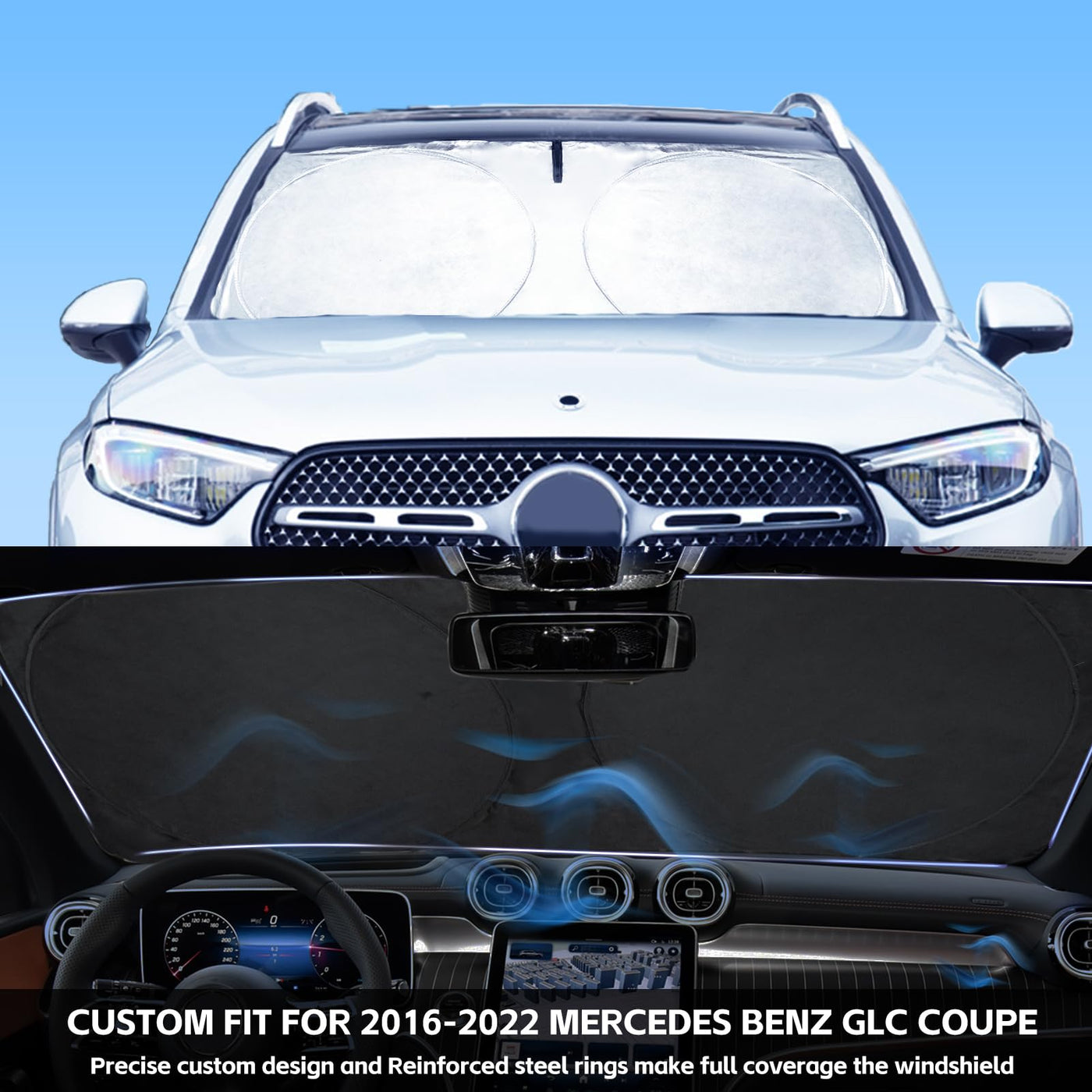Insauto For Glc Windshield Sunshade Foldable Sun Shade Custom-Fit For Mercedes Benz 2016-2022 Glc Suv Glc300 Windshield Cover Ca