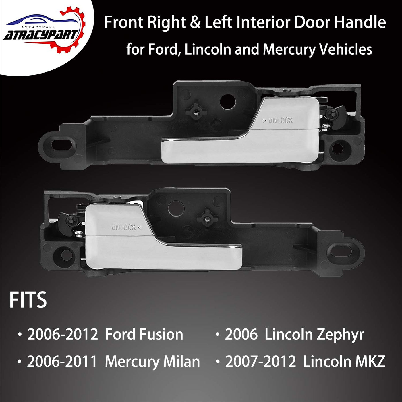 Q: What vehicles are compatible with this interior door handle?A: This interior door handle is compatible with the 2006-2012 Ford Fusion, 2007-2012 Lincoln MKZ, 2006 Lincoln Zephyr, and 2006-2011 Mercury Milan.