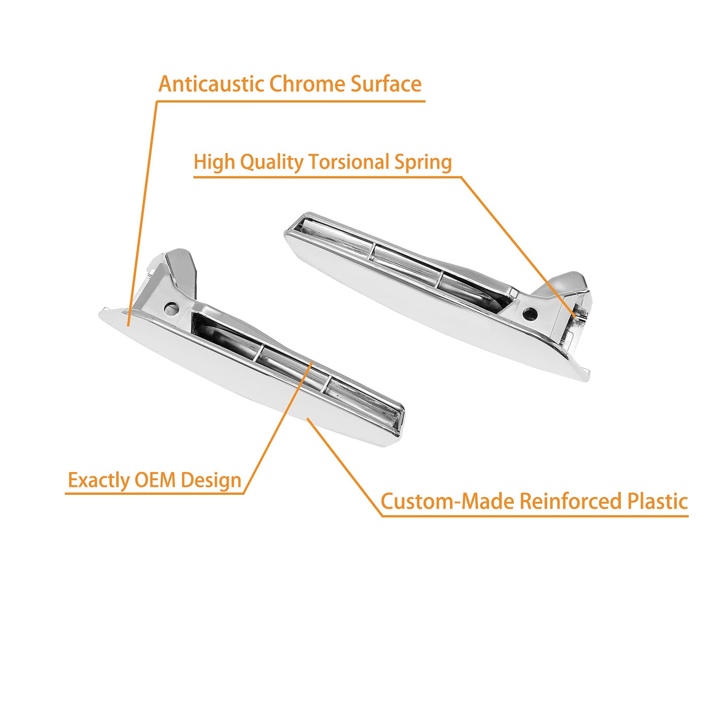 Q: What materials are used in the construction of this door handle?A: The door handle is crafted from custom-made reinforced plastic and features a surface-treated chrome finish to withstand severe weather conditions.