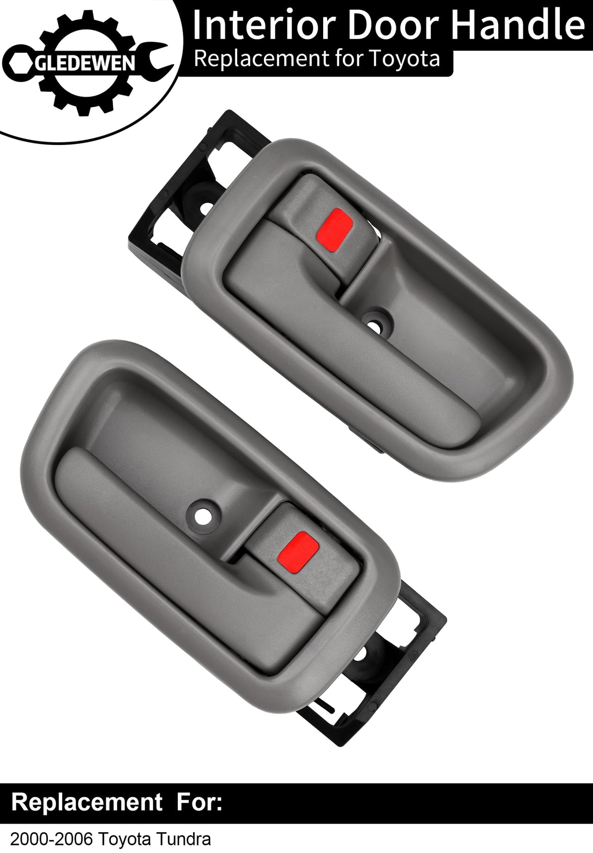 Q: What vehicles are compatible with the Interior Door Handles?A: These interior door handles are specifically designed for the 2000-2006 Toyota Tundra, ensuring a perfect fit for both the front left driver side and right passenger side.