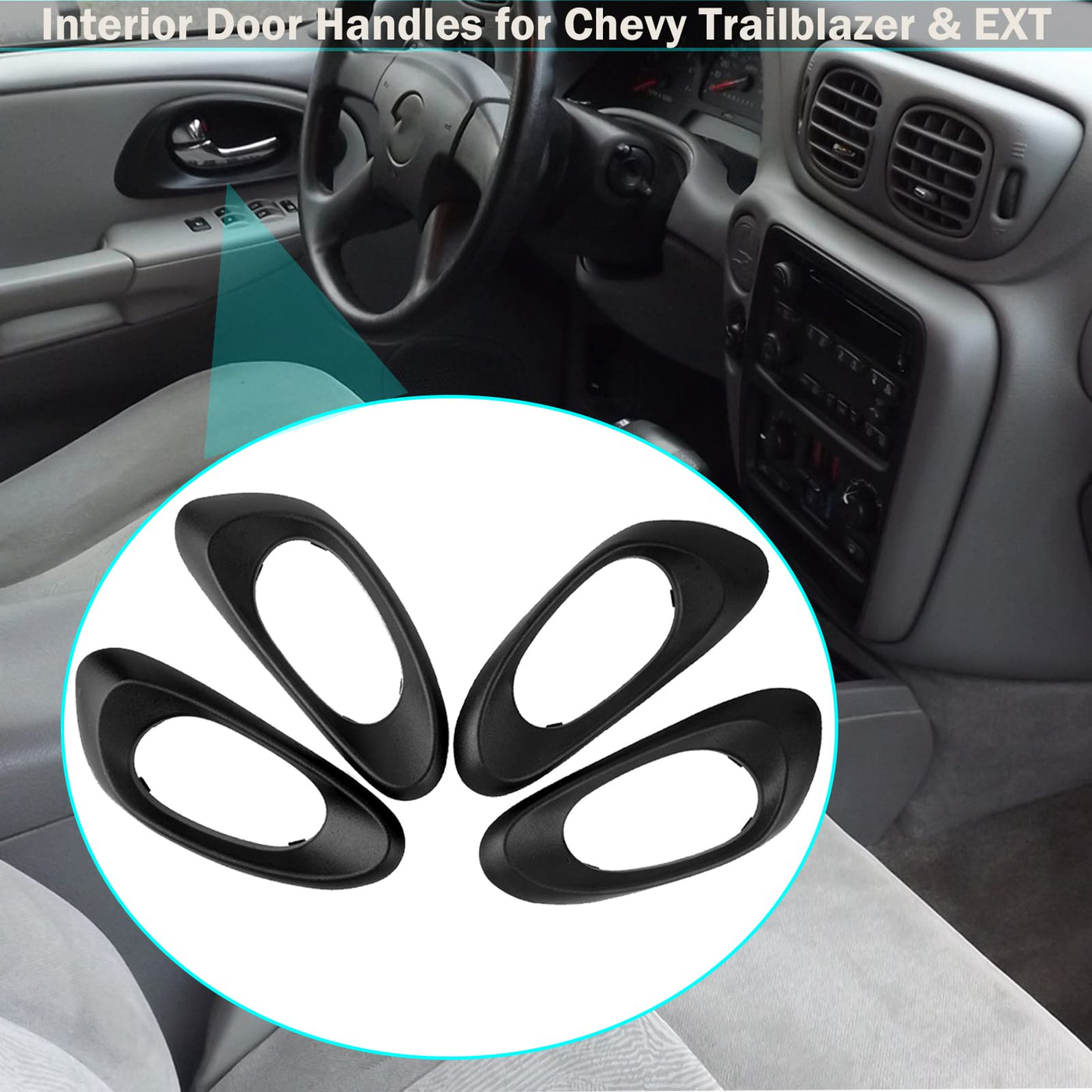 HHCSOP Set of 4 Interior Inside Door Handle Trim Bezel Front Rear Driver Passenger Side Fit for Chevy Trailblazer EXT 2002 2003 2004 2005 2006 2007 2008 2009 OE# 15214507, 15214506, 15214502, 15214501