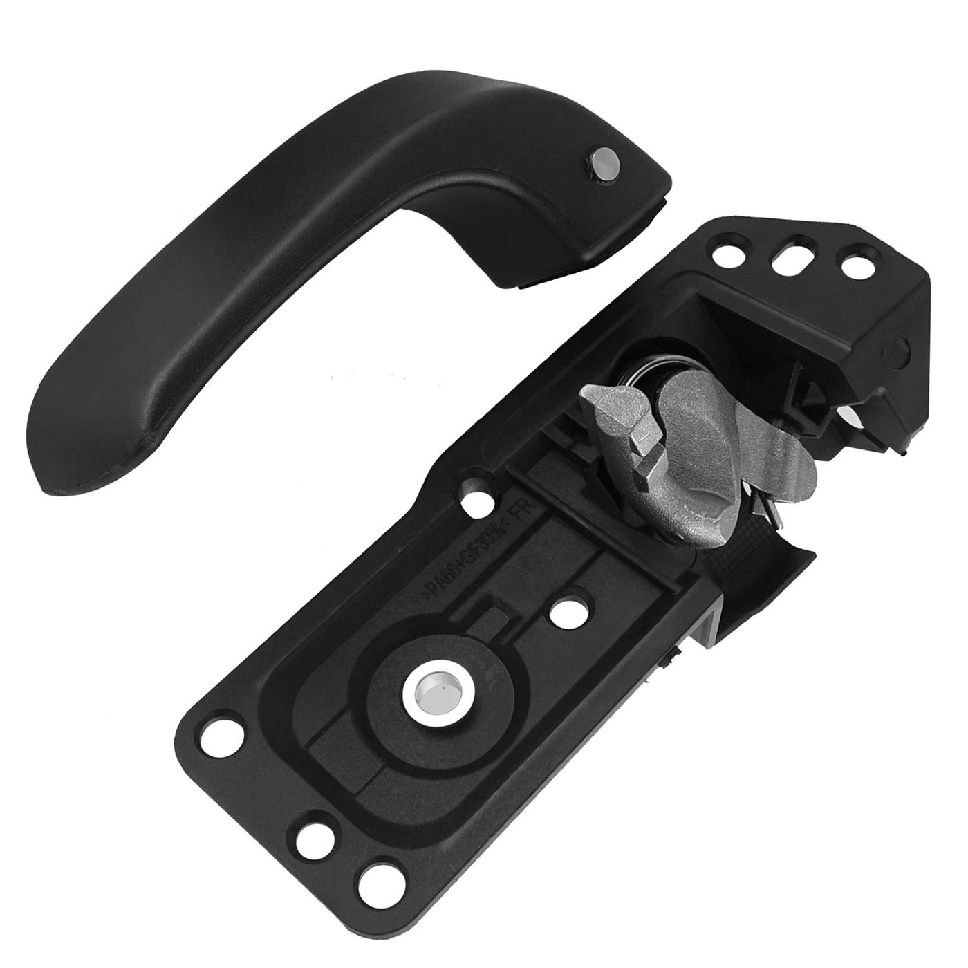 Q: What material is the door handle made of?A: This interior passenger door handle is made from high-quality plastic, which ensures durability and longevity. It is designed to withstand daily use while maintaining its functionality.