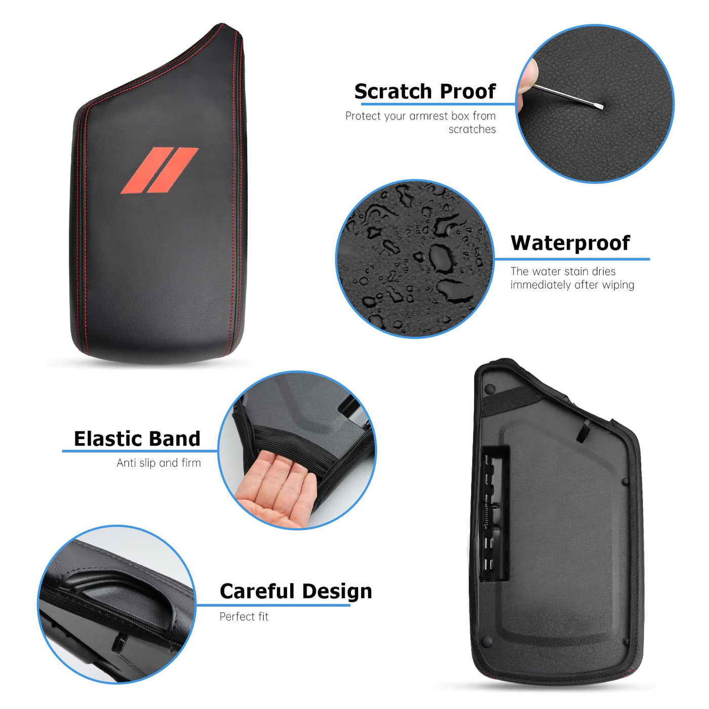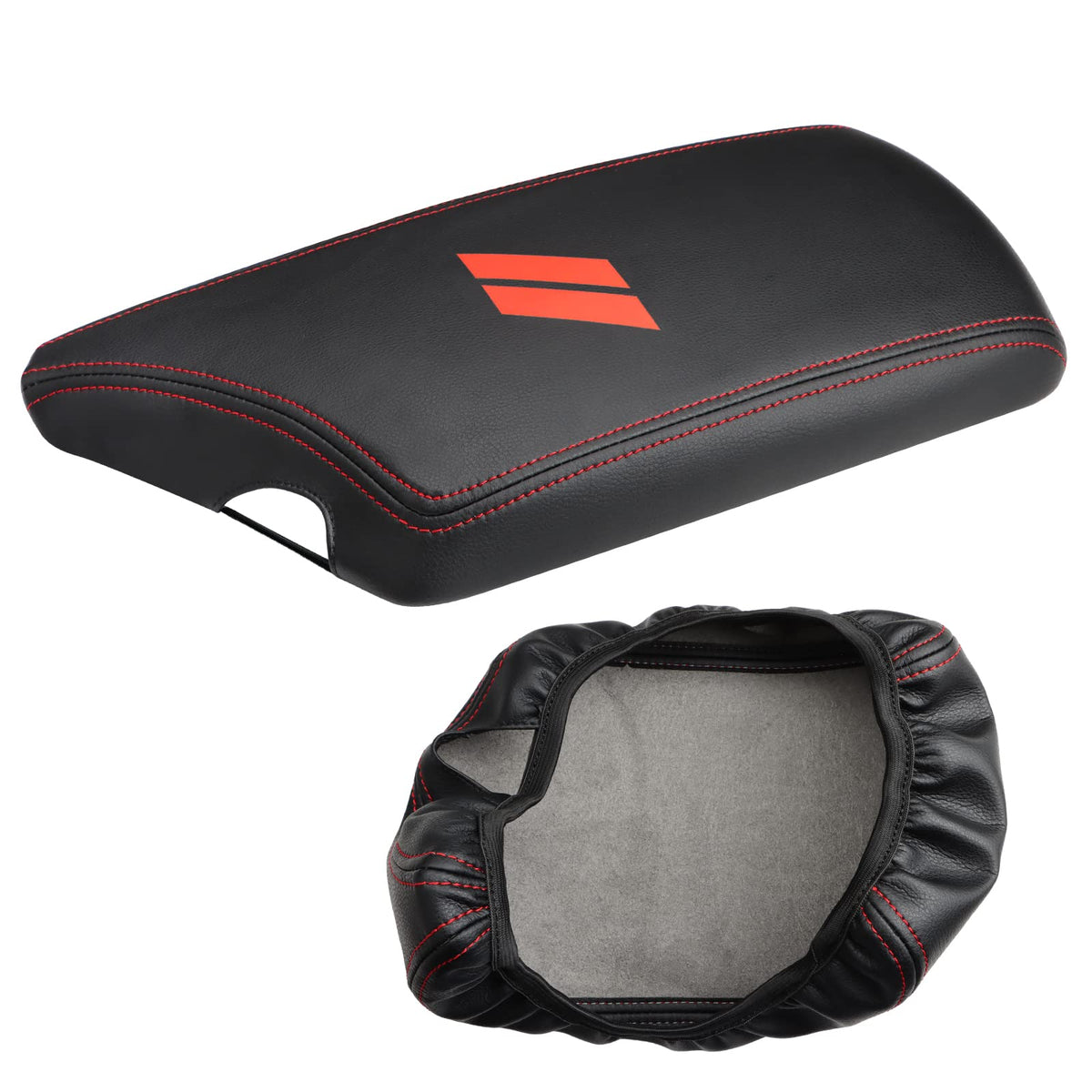 Intget Car Center Console Armrest Cover For Dodge Challenger Accessories 2023 2022 2021 2020 2019 2018 2017 2016 2015 Interior Arm Rest Seat Cover Middle Console Cover Lid Protector Pad (Red Stitches)