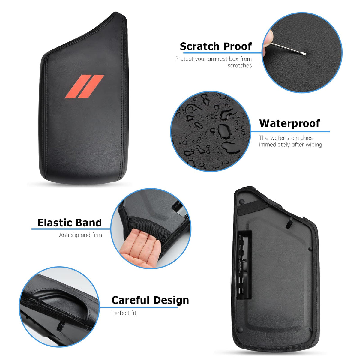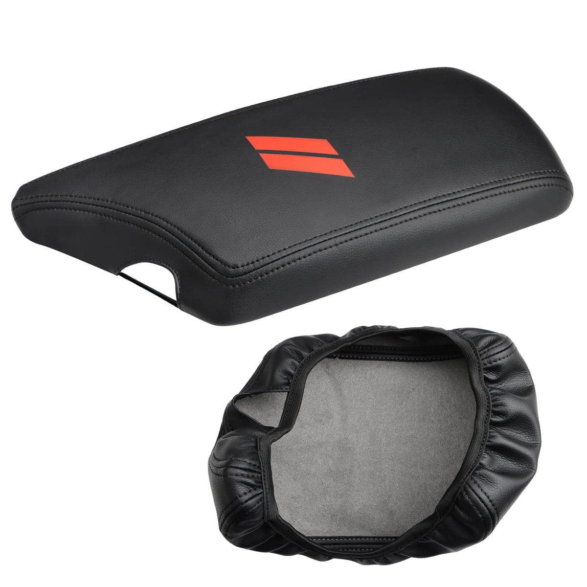 Intget Car Center Console Armrest Cover For Dodge Challenger Accessories 2023 2022 2021 2020 2019 2018 2017 2016 2015 Interior Arm Rest Seat Cover Middle Console Lid Protector Pad(Black Stitches)