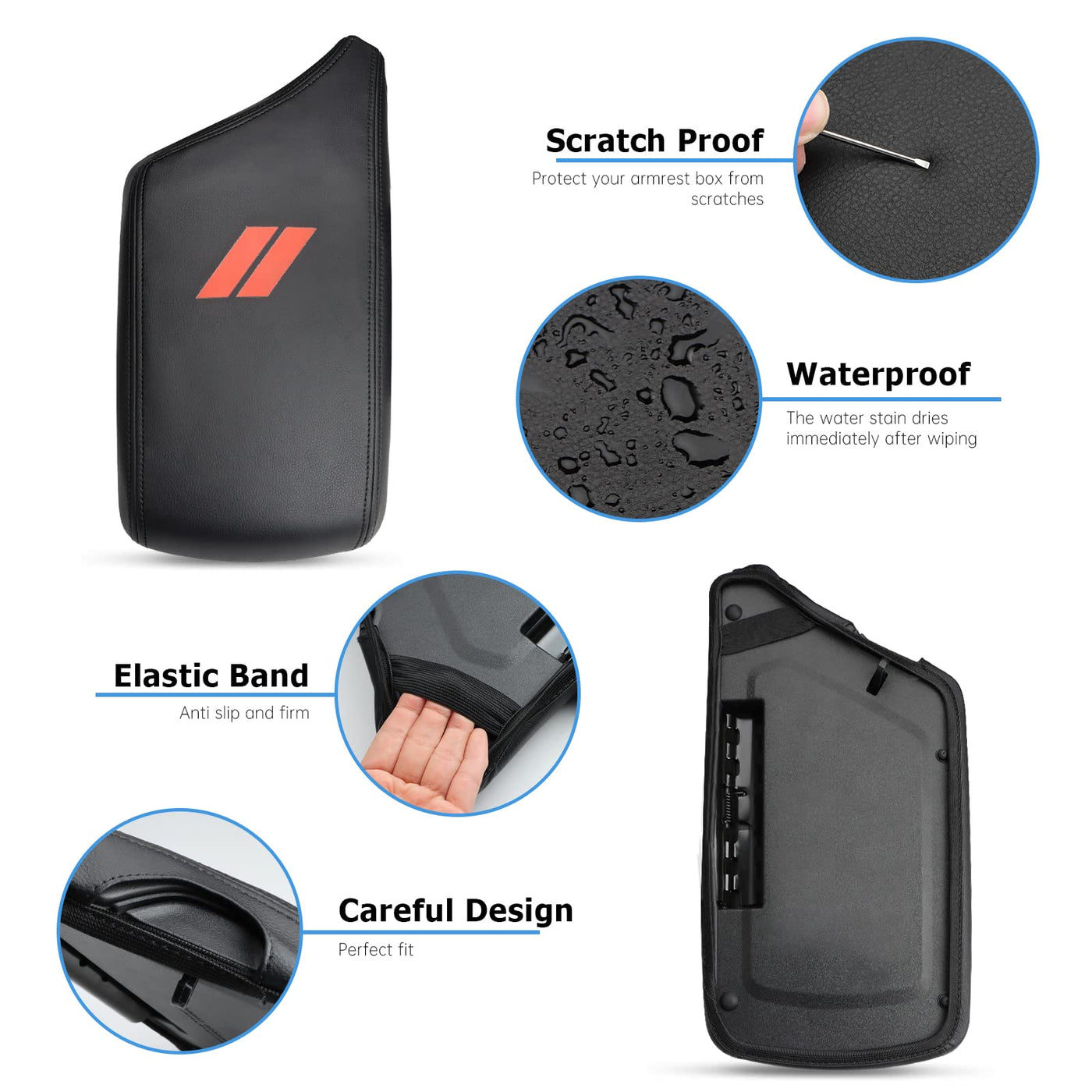 FITMENT:for Dodge Challenger Center Console Cover 2015-2022 2023 Perfect Fitment(Molding by Original Car): -for Dodge Challenger 2023 Accessories -for Dodge Challenger 2022 Accessories -for Dodge Challenger 2021 Accessories -for Dodge Challenger 2020 Accessories -for Dodge Challenger 2019 Accessories -for Dodge Challenger 2018 Accessories -for Dodge Challenger 2017 Accessories -for Dodge Challenger 2016 Accessories -for Dodge Challenger 2015 Accessories Material: Soft leather to make it comfortable enough for your armrests, which must reduce the pressure on your elbows while driving and prevent your arms from sweating on the center console.