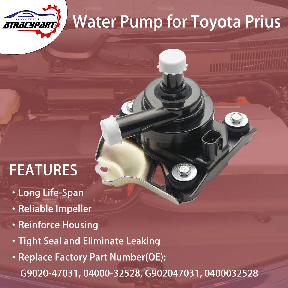 ATRACYPART Inverter Coolant Pump Assembly with Bracket for 2004-2009 Prius Hybrid 1.5L | Replace G9020-47031, 04000-325