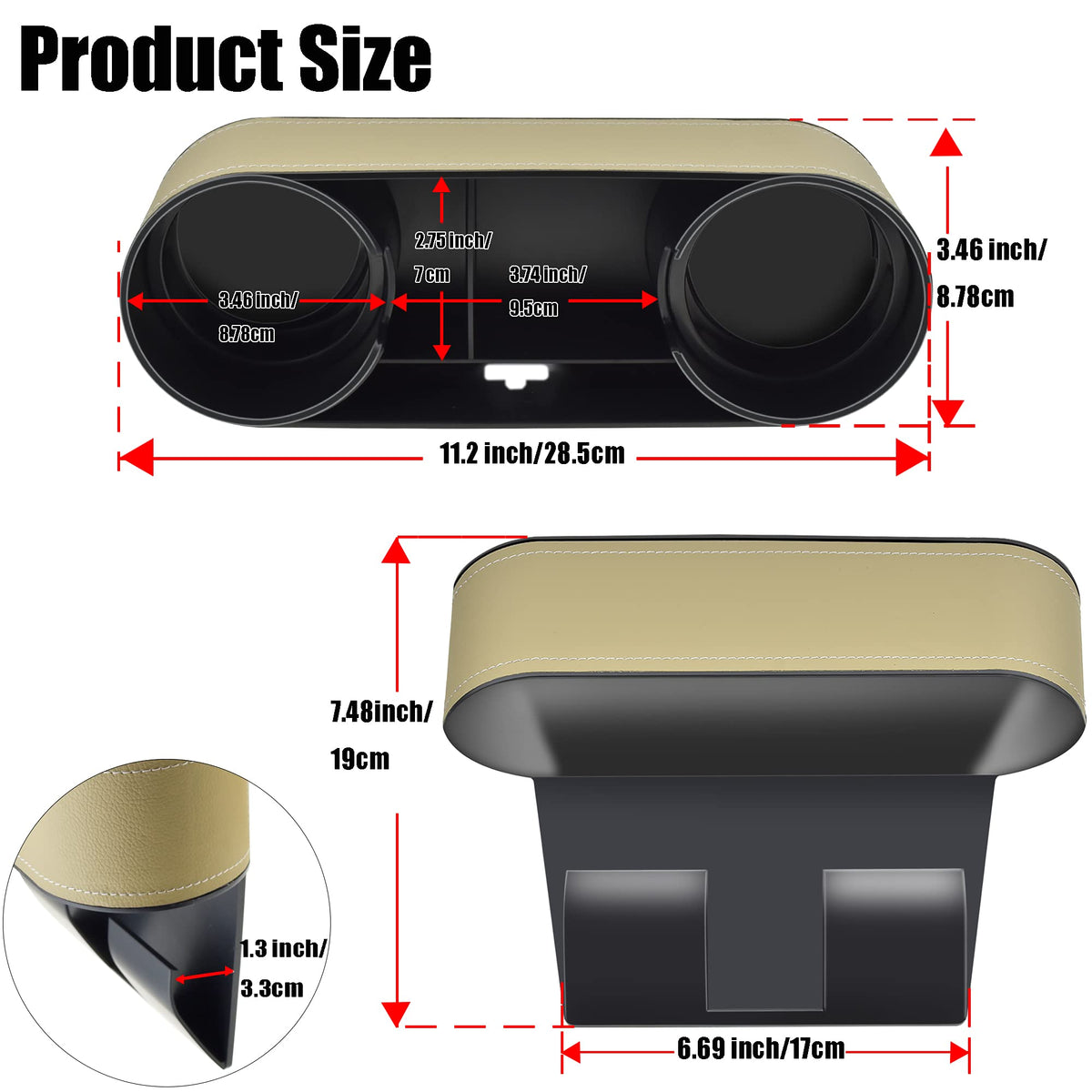 Features: Cup holder design reasonably use the edge of the seat aperture, concise and beautiful. Fit most beverage sizes and have center storage for cell phones, meet the different needs. Seat wedge cup holder, keep your drinks and phone stable. Durable plastic material for years of use and easy cleaning. Great for organizing items, such as cups, cell phone, pens, drinks, etc. Specification: Material: PP/PU Package weight: 0.5Kg Product size (L x W x H): 28 x 21.00 x 10.00 cm / 11 x 8.27 x 3.93 inches Special function: Fit most beverage sizes and have center storage for cell phones Using Method: 1.Select desired mounting location 2.Ensure the mounting surface is thoroughly clean and dry using a suitable solvent 3. Press drink holder firmly in position and use. Notice&Suggest Two cups base suit to put four size of the bottom of the cup: 88mm / 85mm / 75mm / 69mm. For safety, check the product are fixed tightly before driving, to avoid any danger while driving. Package Including : 1 x Seat Wedge Car Cup Holder