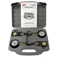 Q: How does the brake system analyzer work?A: This tool features two load cells attached to analog gauges, each with a range of 0-5000 PSI (0-350 BAR). It tests various brake issues, including improperly adjusted proportioning valves and air in hydraulic systems, facilitating accurate diagnostics.