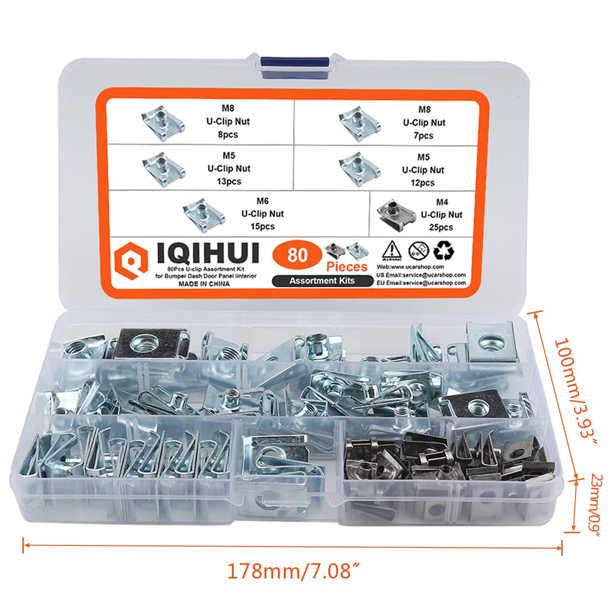 IQIHUI 80PCS Auto Car U-Clip, U Nut Kit Clip Nut Set,U-Shaped Nut M4 M5 M6 M8,for Dash Door Panel Interior, Automobile Motorcycl