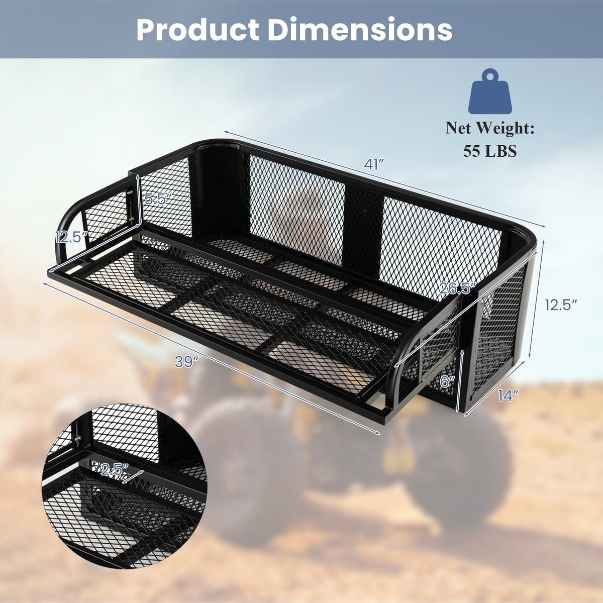 ?&Nbsp;Universal Rear Basket Is Compatible With Most Atv, The Overall Size Is 41’’L&Nbsp;X 26.5’’W&Nbsp;X 12.5’’H