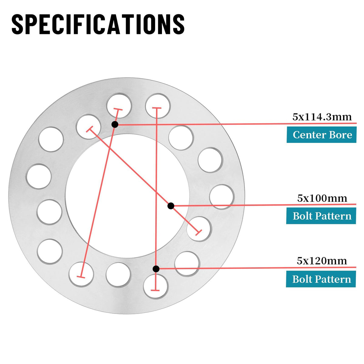 Q: What is the thickness of the IRONTEK wheel spacers, and how does it affect performance?A: The IRONTEK wheel spacers have a thickness of 3/16 inch (5mm). This thickness can help improve wheel clearance and enhance the vehicle's stance, potentially allowing for better handling and stability during driving.
