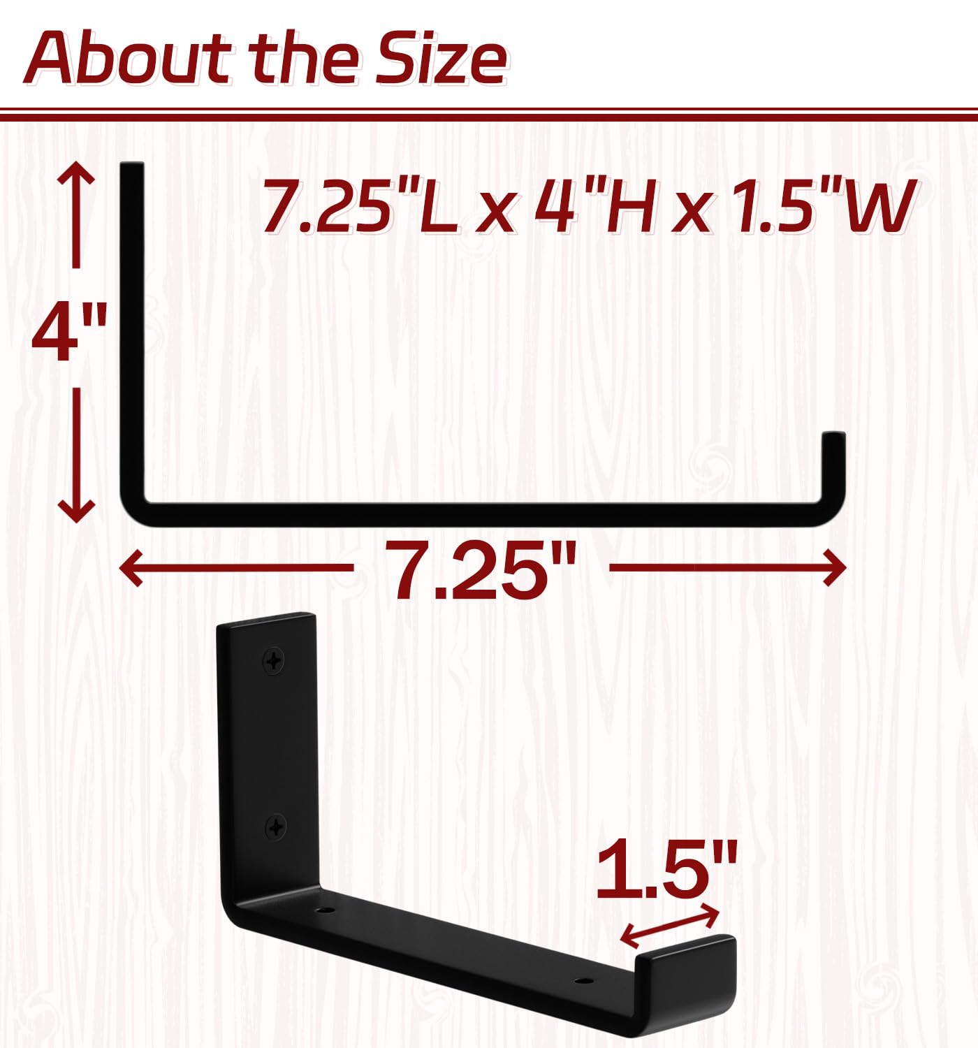 Isoker 8 Pack - 7.25'L X 4'H X 1.5'W Shelf Bracket, 1/5” Thick Iron Metal Wall Floating Shelf Bracket, Rustic Industrial J Lip Shelf Bracket