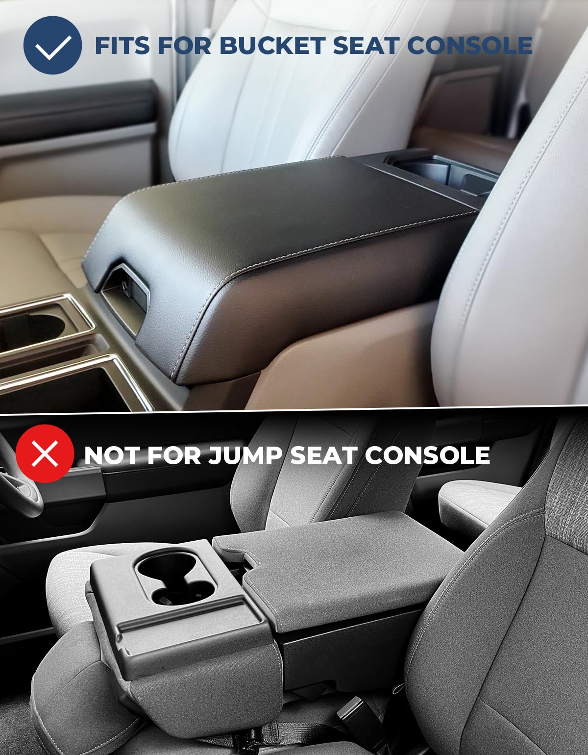 Q: Is the ISSYAUTO Center Console Cover compatible with my F150 or Expedition?A: Yes, the ISSYAUTO Center Console Cover is designed to fit various models including the 2015-2020 F150, 2017-2022 F250, F350, F450, and the 2018-2024 Expedition. Please ensure your vehicle has a bucket seat console, as it does not fit jump seat or work surface consoles.