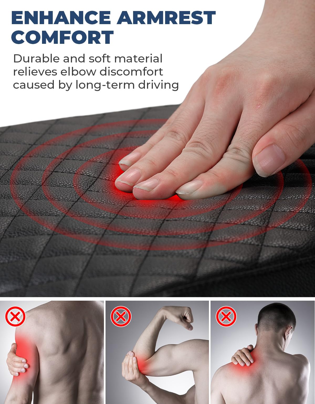 Q: What materials are used in the ISSYAUTO Center Console Cover?A: The cover is made of high-quality soft leather and filled with sponge for enhanced comfort. This combination not only provides a cozy feel but also ensures durability and protection for your console.