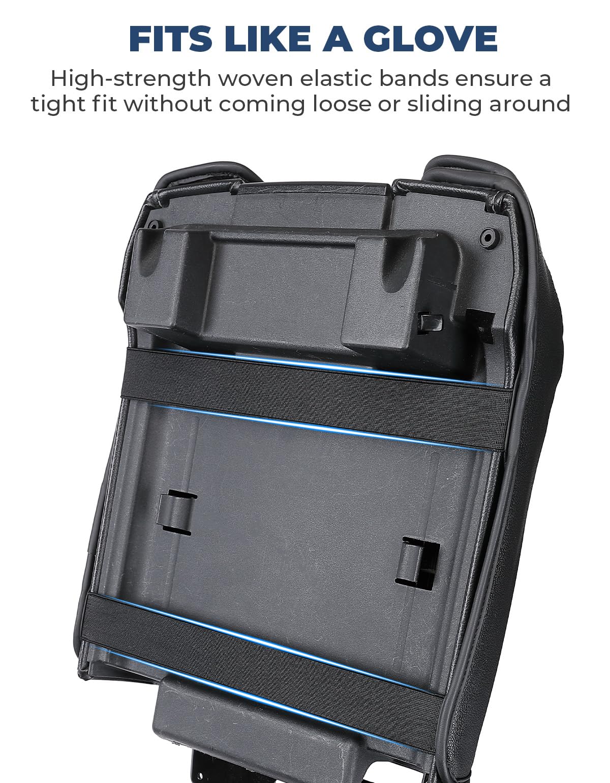 Q: How do I install the ISSYAUTO Center Console Cover?A: The installation process is simple and quick. The cover features two elastic bands on the back that ensure a tight fit. Just place the cover over the console, adjust it for proper alignment, and it will stay securely in place.