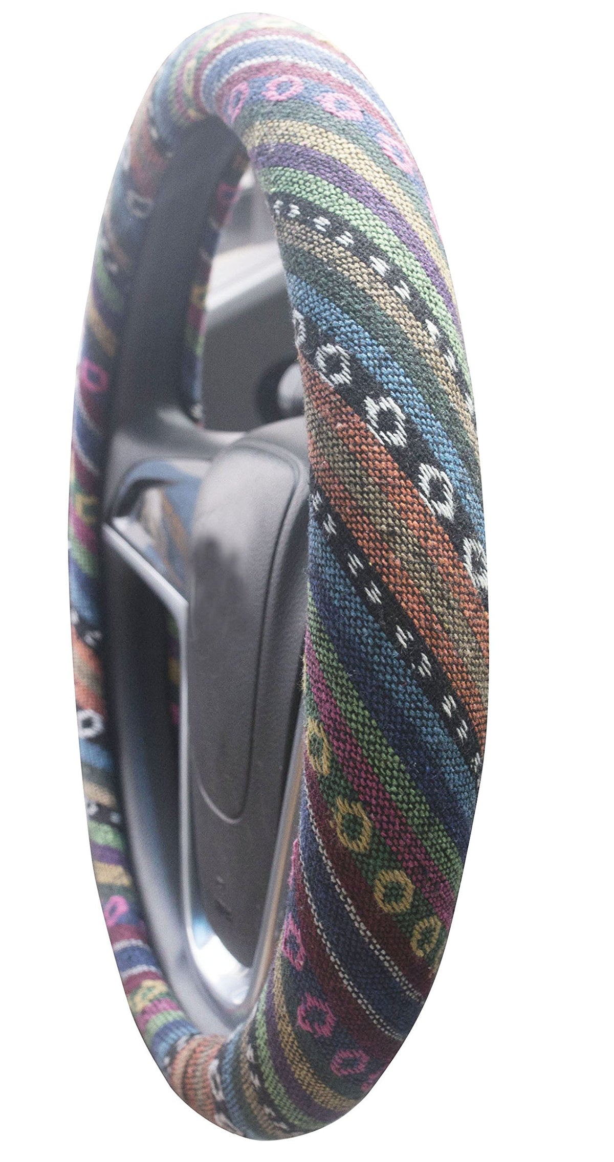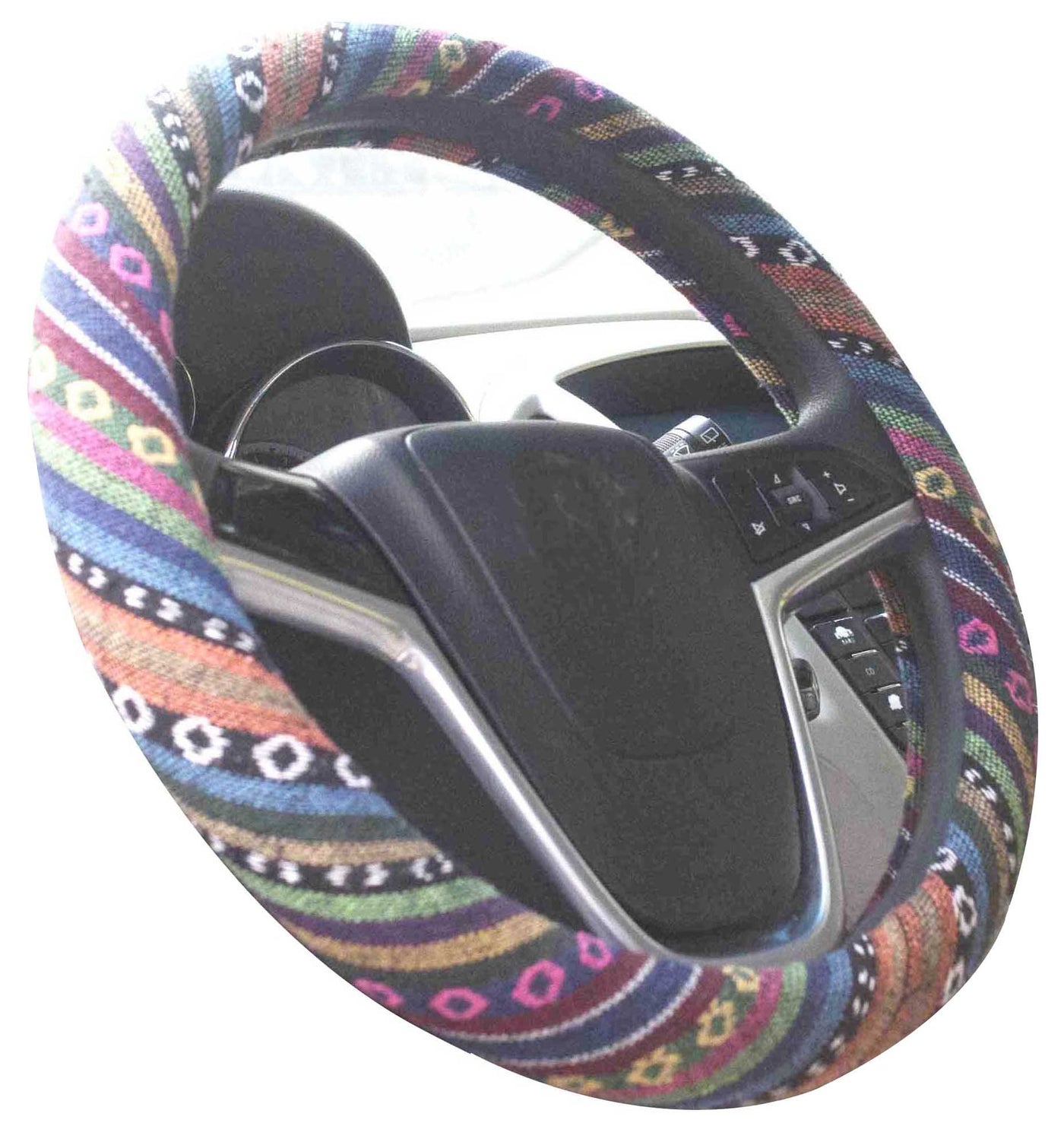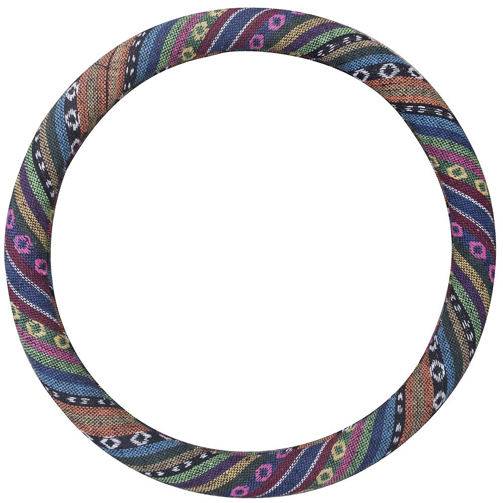 Istn Ethnic Style Coarse Flax Cloth Automotive Steering Wheel Cover Anti Slip And Sweat Absorption Auto Car Wrap Cover (C, 15.25