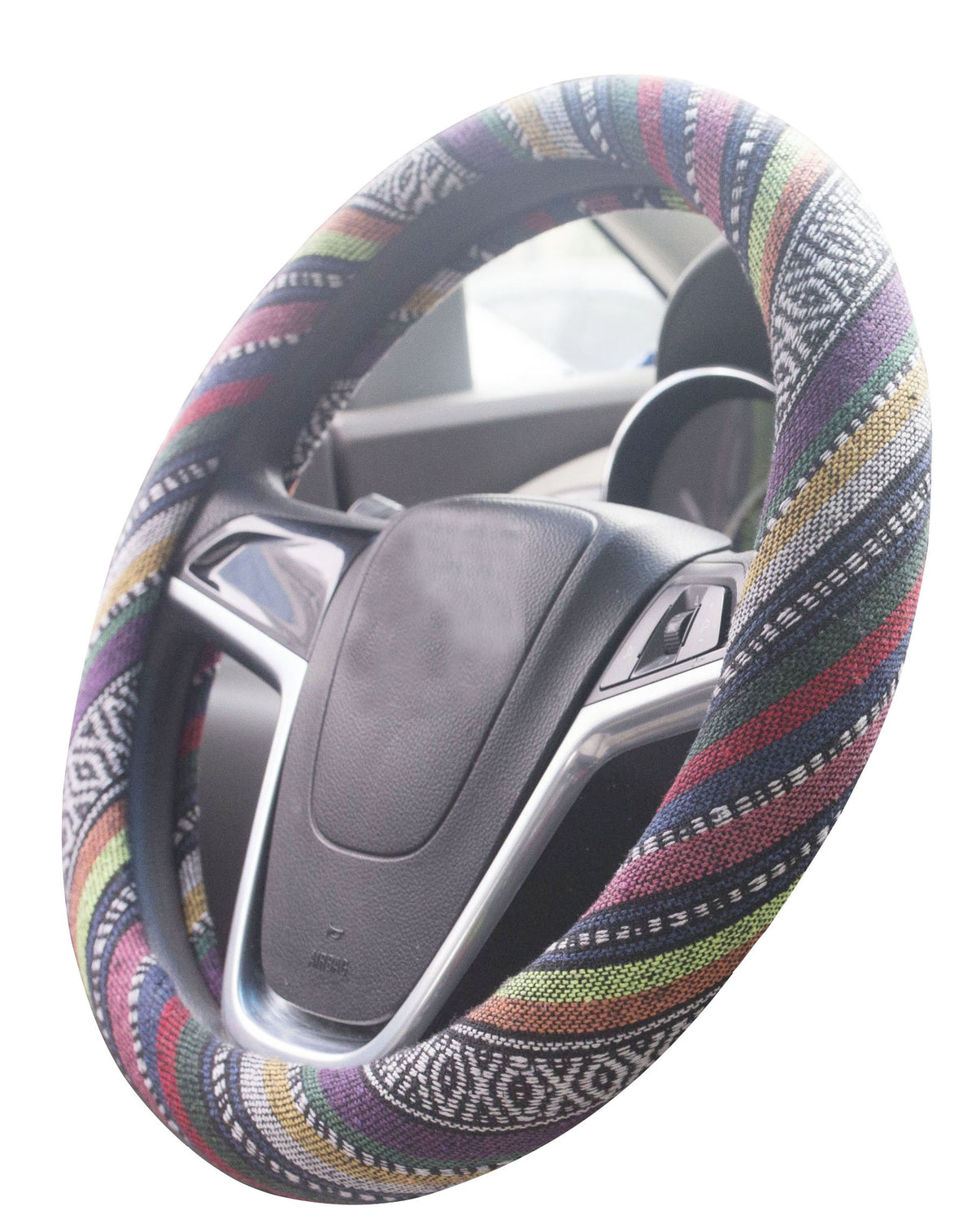 Istn Medium Ethnic Style Coarse Flax Cloth Automotive Steering Wheel Cover Anti Slip And Sweat Absorption Auto Car Wrap Cover (1