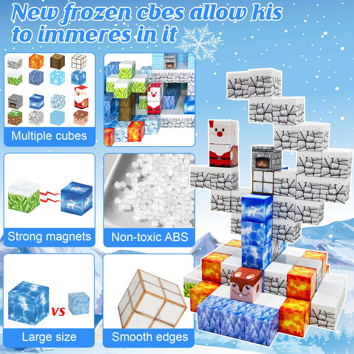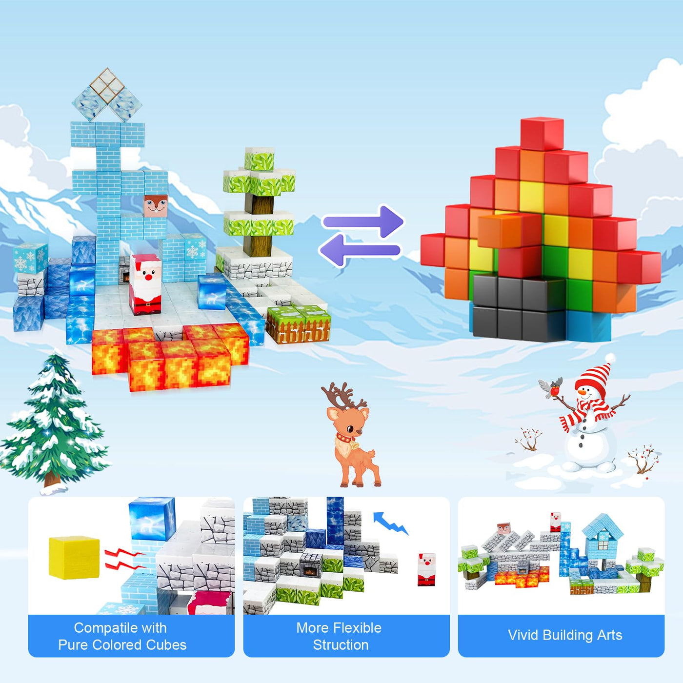 A VARIETY of FUN MAGNETIC WORLDS: 110 magnetic cubes (20 designs) are included. Kids can choose their favourite dinosaurs, cars and doll toys to add to the fun magnetic worlds. Offers themed worlds ranging from simple to complex to get kids started on fun adventures (Note: Includes Quick Start Idea Book for kids of all ages)!