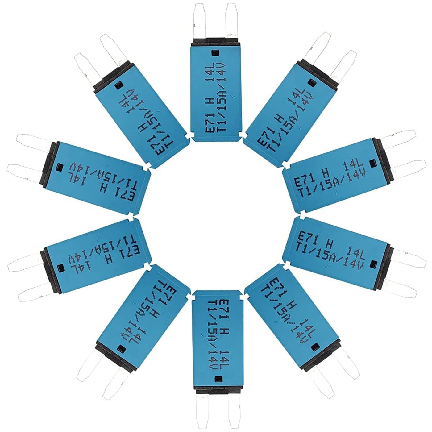 Iztor Automatic Reset Atm Mini Circuit Breaker Car Protector Blade Fuses Assortment Kit 10Pcs Dc 14V E71 T1 15 Amp