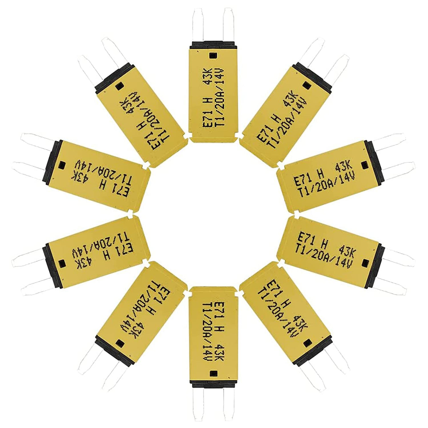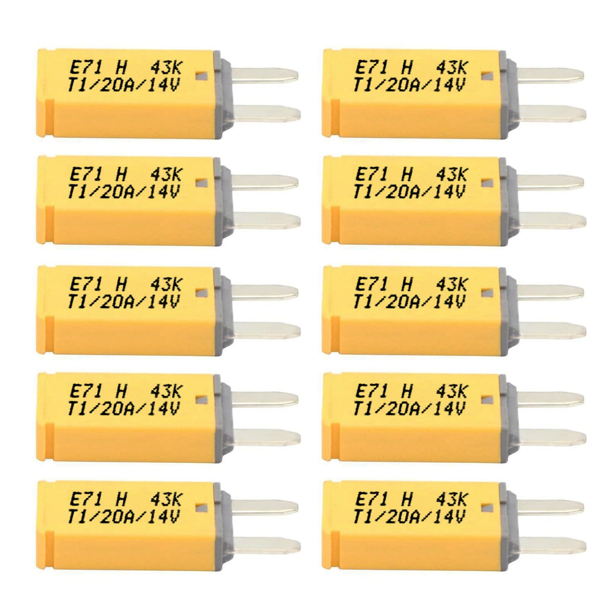 Iztor Automatic Reset Atm Mini Circuit Breaker Car Protector Blade Fuses Assortment Kit 10Pcs Dc14V E71 T1 20 Amp