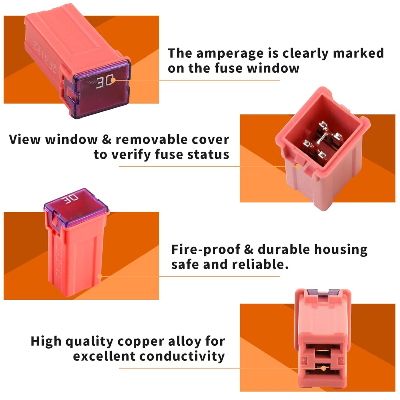 High quality! 100% Brand new! - Mmonly used replacement fuses for most vehicles. - Much cheaper than buying them at your local automotive store. - Nice to have lots of spare fuses if you have lots of equipment. - Perfect for any mechanic or repair shop. - If you've ever blown an auto fuse before & had to run to the hardware store for a single fuse, you know how much of a time saver this will be. ? Can be used for: Car,SUV,Truck,Motorcycle,Home,Boat,Camper RV,ATV Quad,UTV,Golf Car - Most electrical devices. ? Value list: - High Profile: 30A - 10pcs ?Tips: Make sure the picture fuse size is suitable for your car About returns policy and our services: 1.If you are not satisfied with our product or order wrong item, let us know at the first time, we will reply you in 12 hours. 2.If you are satisfied with our products, please don't forget to leave 5 stars Positive Feedback, we will appreciate your encourage.