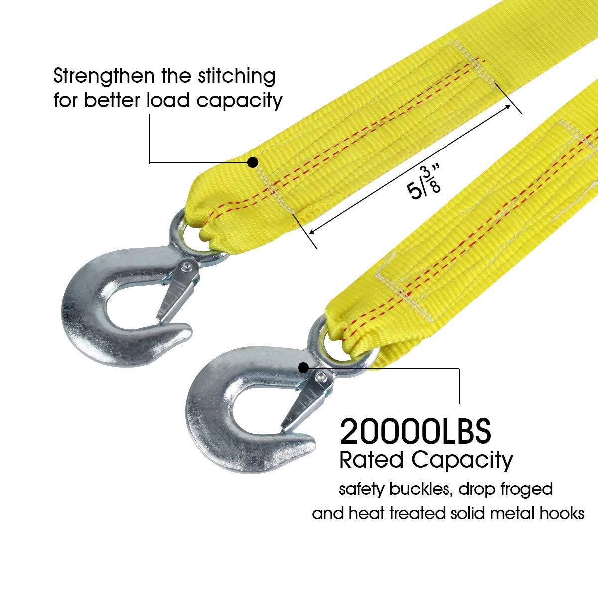 Specifications: Color: Bright Yellow Material: Made Of High Tensile Strength Nylon Width: 2 Inch Length: 20 Feet Break Strength Capacity: 20,000Lbs Weather Resistance And Durable Perfect Length, Perfect For Tow And Recovery Car. Package Include: 1* Towing Strap In Storage Bag Versatile Use For Car, Suv, Atv, Jeep, Truck And More, Or Use As Tree Saver And Winch Extension.