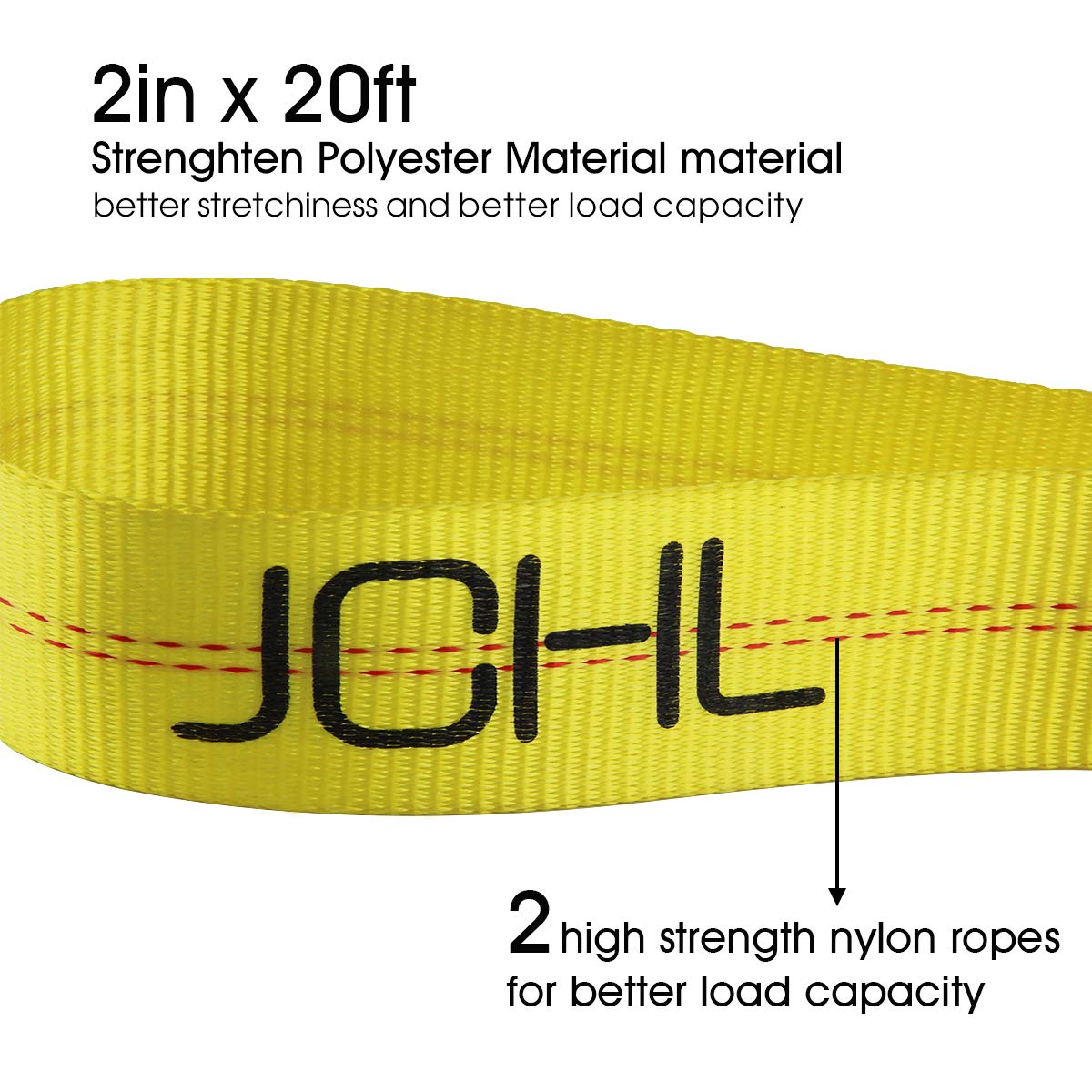 Q: How do I care for and maintain the nylon tow strap?A: To maintain the JCHL nylon tow strap, store it in a cool, dry place after use, and avoid exposing it to sharp objects or extreme heat. Regularly inspect the strap for any signs of wear or damage before each use.