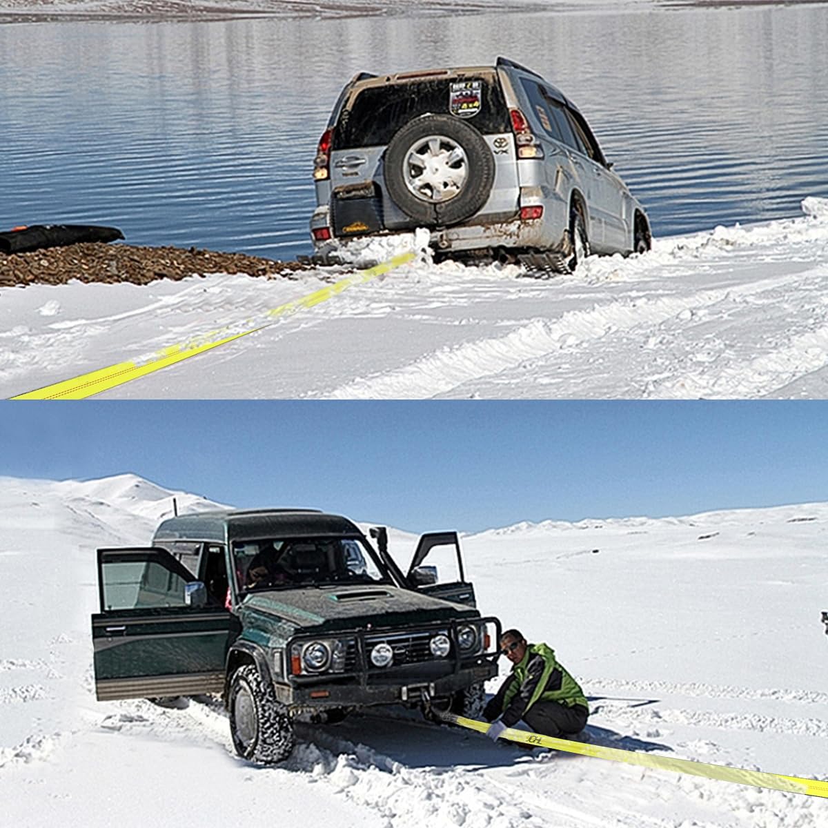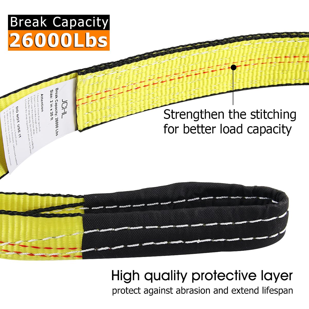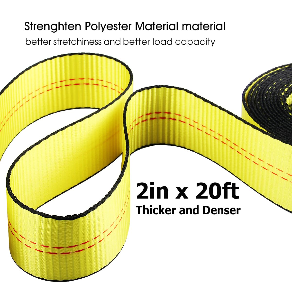 tow the rope slowly, do not tow it suddenly Specifications: Color: Bright yellow Material: Made of high tensile strength nylon Width: 2 Inch Length: 20 Feet Break Strength Capacity: 26,000lbs Weather resistance and durable perfect length, perfect for tow and recovery car. Package include: 1* towing strap in Storage Bag
