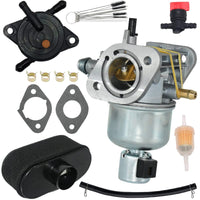 Q: What is included in the JDLLONG 15004-0827 carburetor package?A: The package includes 1 x carburetor, 2 x gaskets, 1 x 11013-7047 air filter, 1 x 49040-7008 fuel pump, 1 x shut-off valve, 1 x fuel line, 1 x fuel filter, 4 x clamps, and 1 x carbon dirt jet cleaner tool kit.