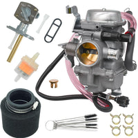 Q: What is included in the package when I purchase this carburetor?A: The package includes 1 x Carburetor, 1 x Gas Fuel Tank Petcock, 1 x Fuel Filter, and 4 x Clamps, along with a Carbon Dirt Jet Cleaner Tool Kit.