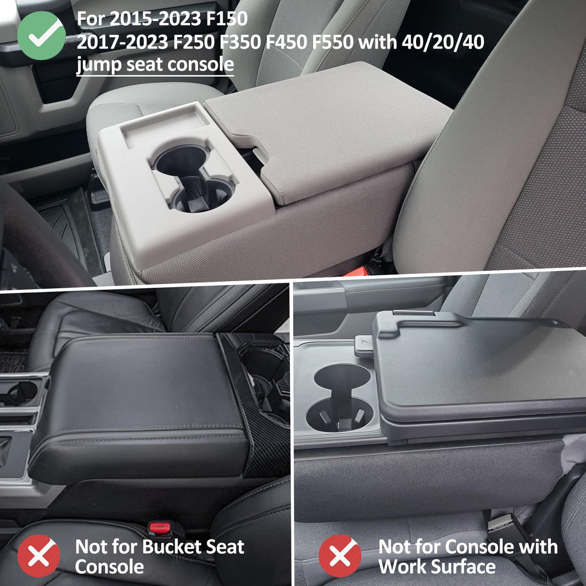 CUSTOMIZED FIT: The Center Console Cover is designed for the 2015-2024 F150, 2017-2024 F250 F350 F450 F550 with 40/20/40 jump seat console. (ONLY for jump seat console, NOT for bucket seat console and the console with work surface).