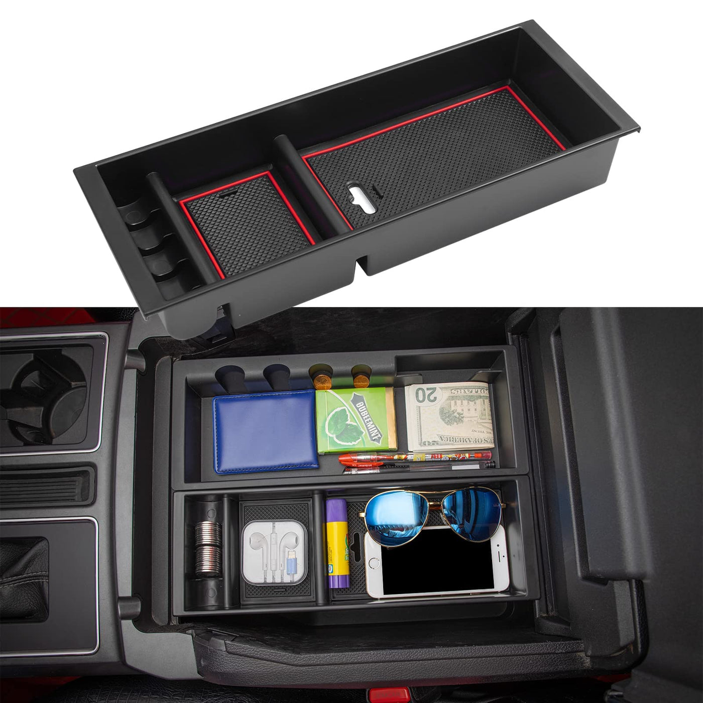 JDMCAR Center Console Organizer Compatible with 2015-2020 Ford F150 / 2017-2022 F250 F350 and 2018-2022 Expedition Accessories, ABS Material Insert Tray Storage Box- (Bucket Seats ONLY) - Red Trim