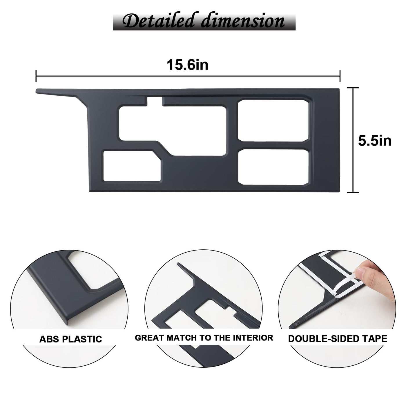 Q: What material is the gear shift panel trim cover made from?A: The gear shift panel trim cover is made from high-quality ABS plastic, which is sturdy and durable, providing excellent protection against scratches and abrasions.