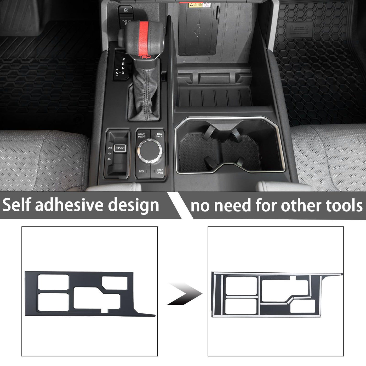 Vehicle Fit: The Car Gear Shift Panel Trim Cover Is Compatible With Toyota Tundra / Sequoia 2022 2023 2024 2025. Simply Remove The Double-Sided Adhesive And Stick It On, Will Not Affect The Use Of The Gear Shift Or Button.