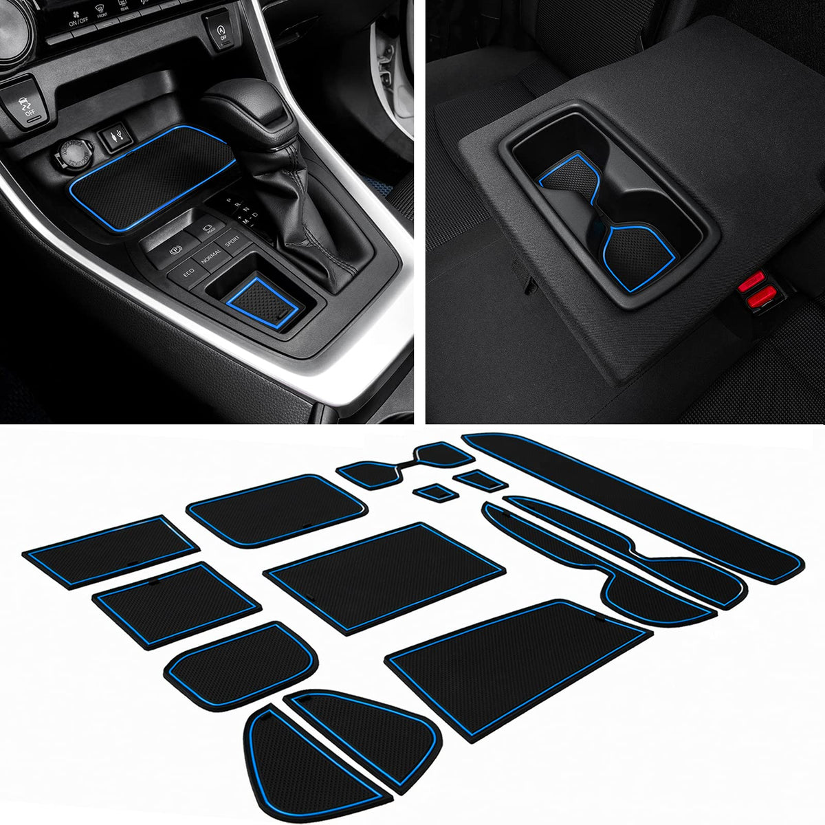 Jdmcar Liner Accessories Compatible With Toyota Rav4 2024 2023 2022 2021 2020 2019 And 2021-2024 Rav4 Prime, Custom Fit Cup Holder, Center Console, And Door Pockets Inserts Kit (Blue Trim) - 15 Pc Set