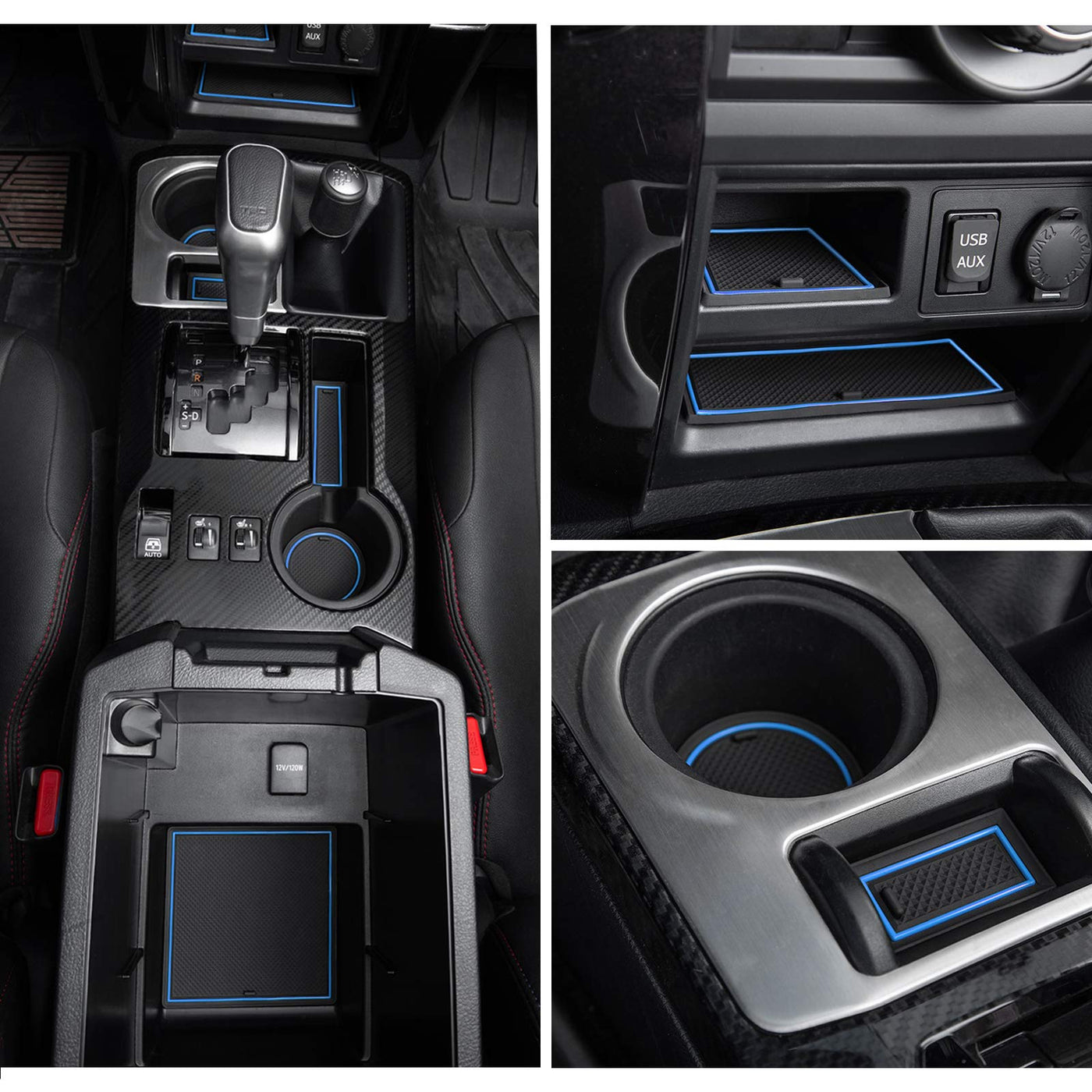 Jdmcar Premium Cup Holder, Console, And Door Pocket Inserts Kit Compatible With 2023 Toyota 4Runner 2010-2019 2020 2021 2022 - Custom Liner Accessories (2 Row, Blue Trim)-27Pc Set