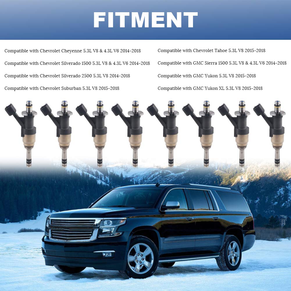 Jdmon Compatible With Fuel Injectors Chevrolet Silverado 1500 2500 Tahoe Suburban Cheyenne Gmc Sierra 1500 Yukon 5.3L 2014 2015 2016 2017 2018 Replace 12668390 Fj1217 Pack Of 8