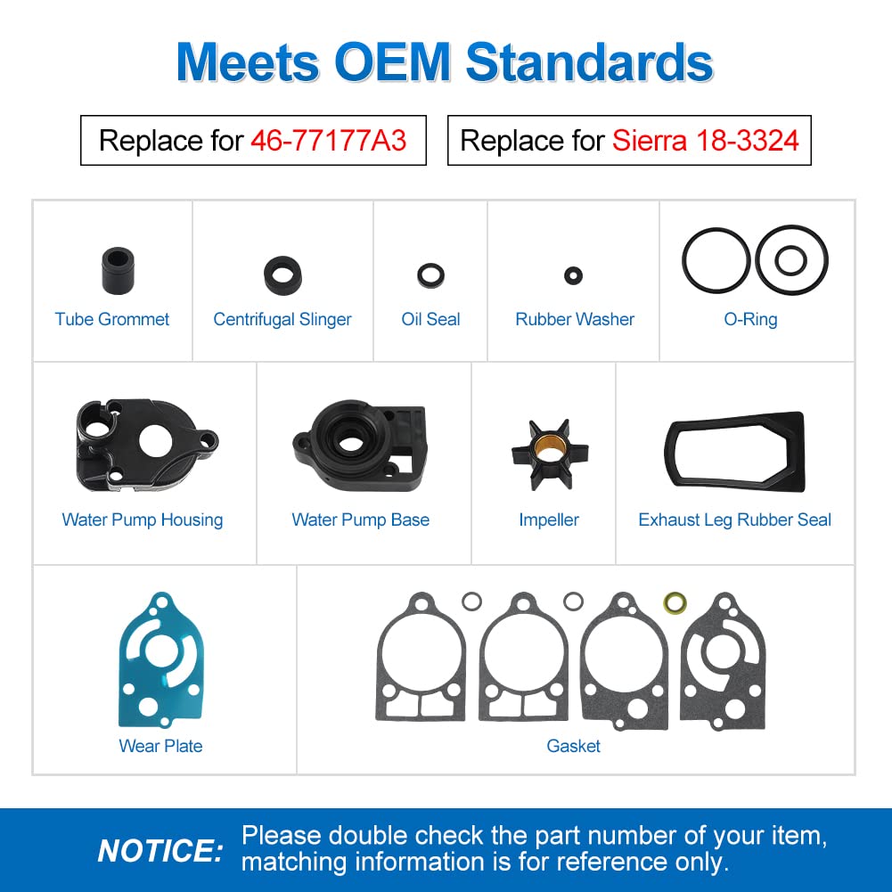 JDMON Water Pump Repair Kit Replacement for 46-77177A3 Sierra 18-3324 Replacement for Mercury Mariner 2-Cycle Outboards 30 35 40