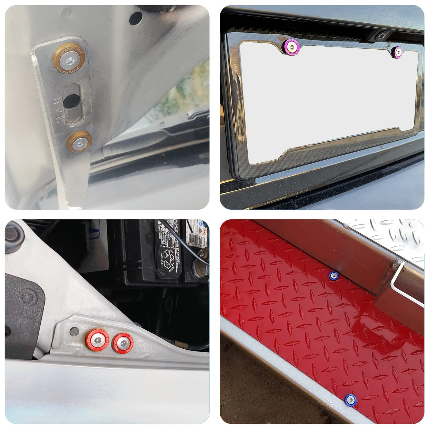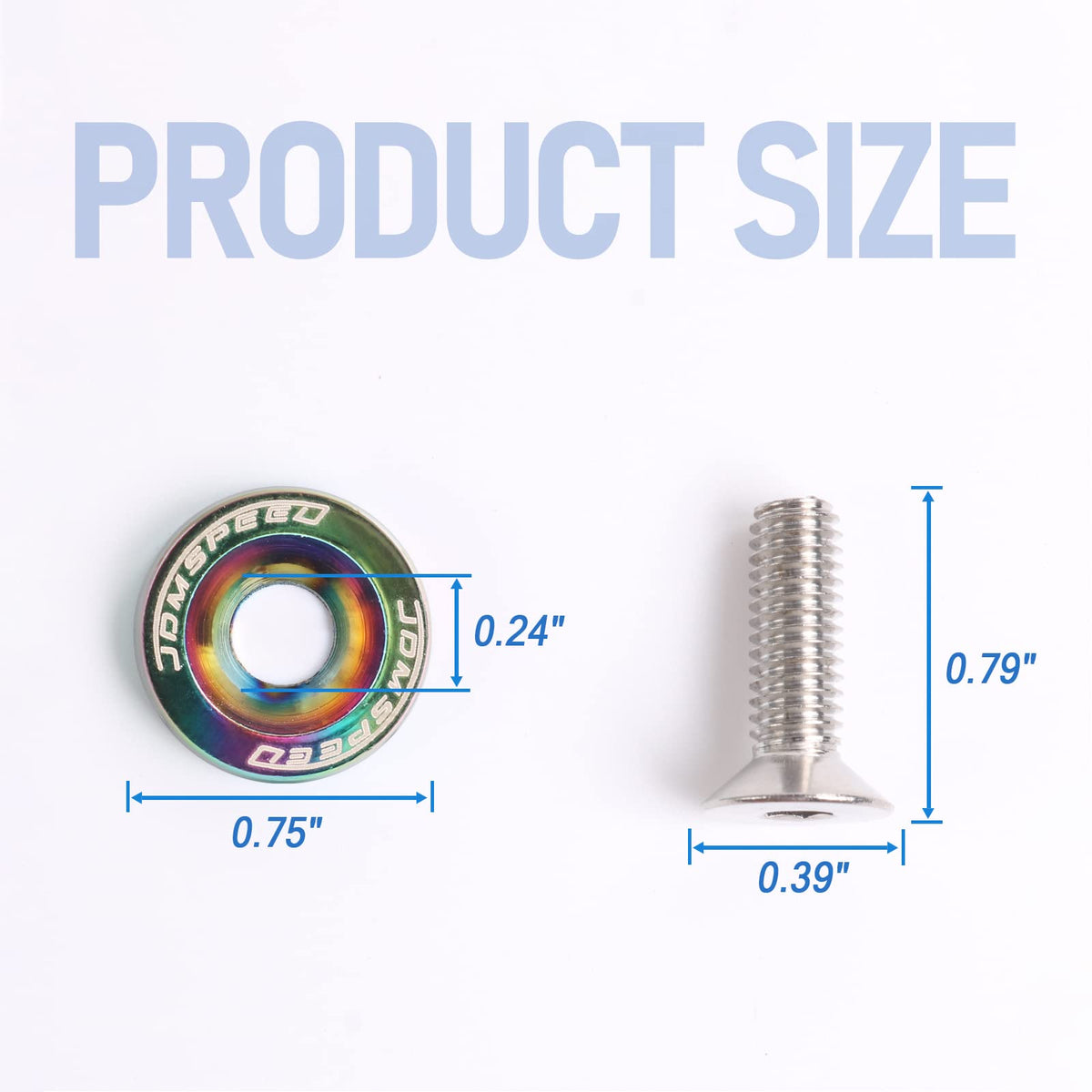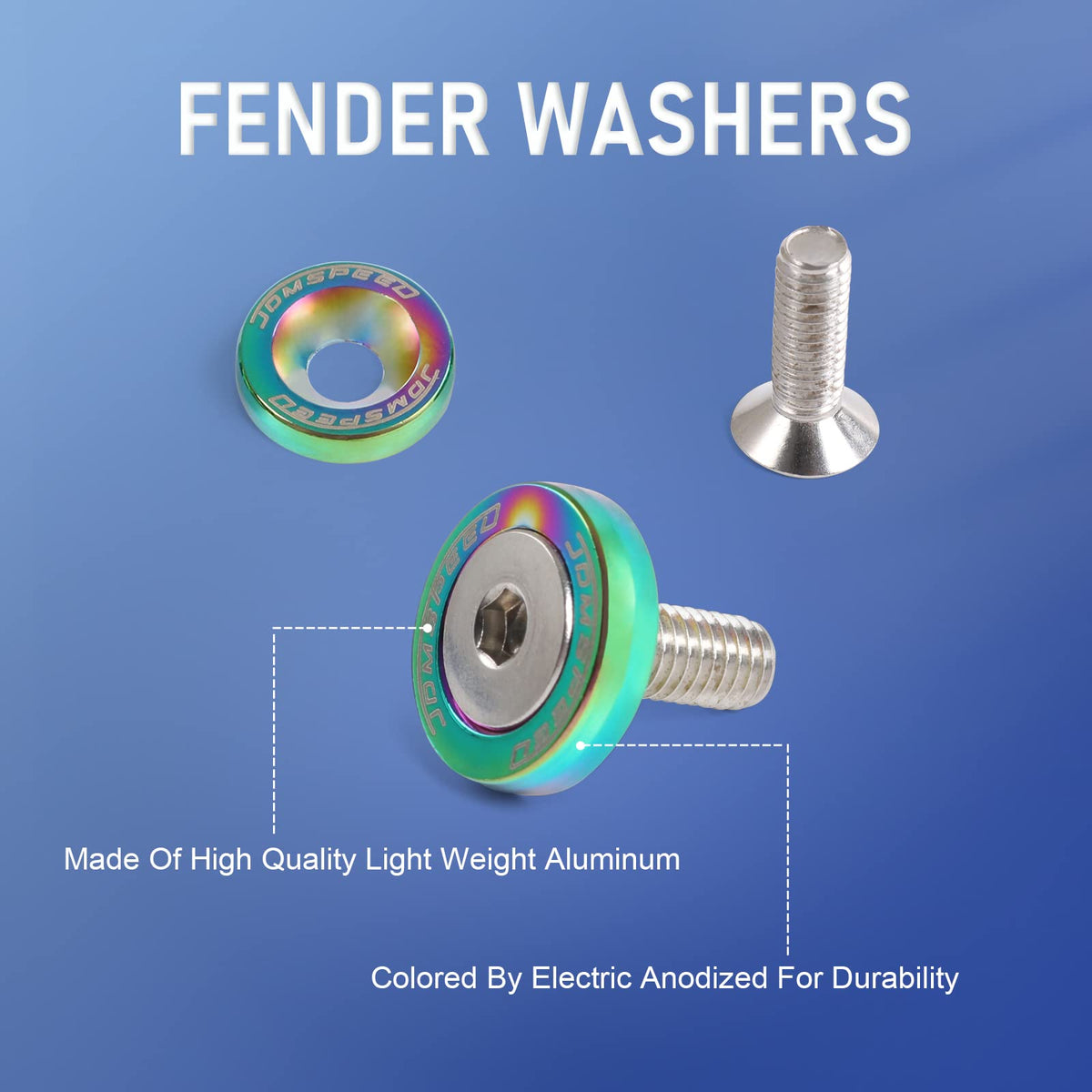 Q: Are these fender washers compatible with all vehicles?A: Yes, the JDMSPEED Fender Washers are universal and designed to replace any bolts with 10mm heads, making them suitable for various applications, including fenders, bumpers, headlights, and more.