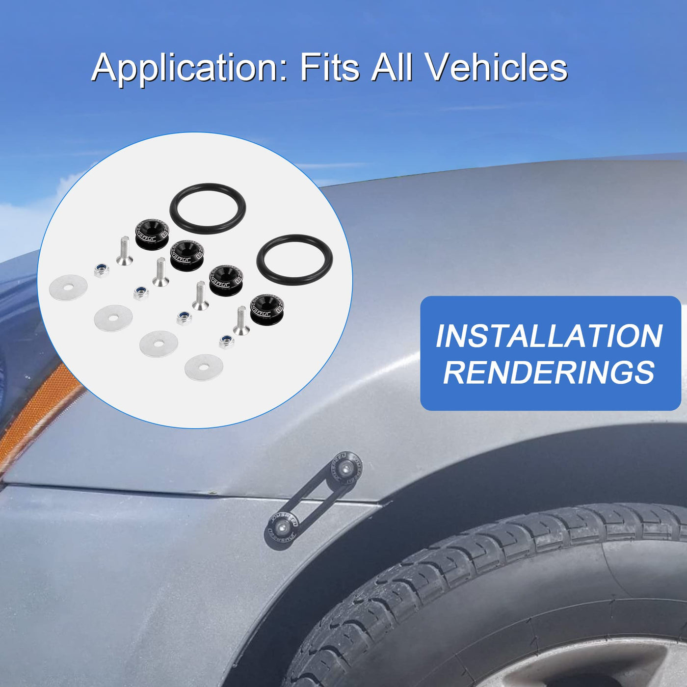 Q: What vehicles are compatible with the JDMSPEED Black Universal CNC Billet Bumper Trunk Quick Release Fastener Kit?A: The JDMSPEED Quick Release Fastener Kit is designed to be universal, meaning it fits all vehicles. Whether you have a car, truck, or SUV, this kit can be installed for easy bumper removal.