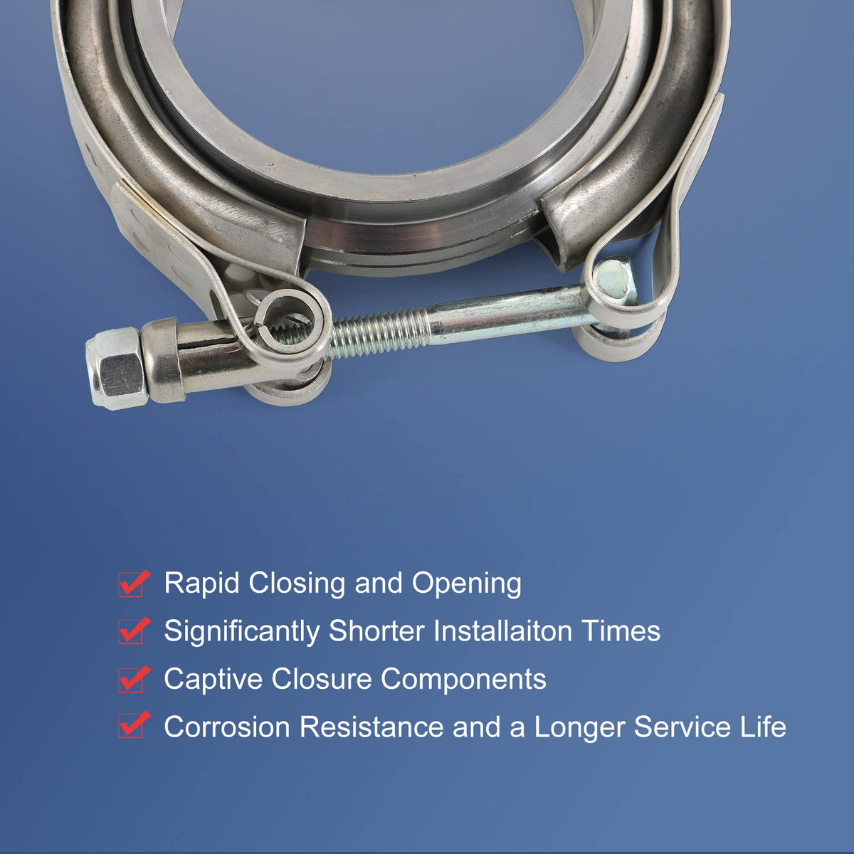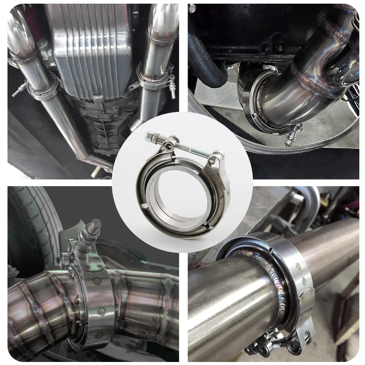 Description V-Band Clamps makes it easy to install and remove intercooler systems and turbo parts, such as charge piping, intake pipes and the like. Great for racers and tuners, these clamps make it easy to remove parts to gain access to vital components easily as there are no hard hard to reach bolts or special tools needed. Simply undo the clamp and you can remove the component easily. Flanges ID: 2.5 inch Clamp:2.75'' 70mm-80mm Availabel size:2.5''/3'' No instruction included Professional installation is highly recommended Package includings 2 X V band Clamp 4 X V band flanges(Male/Female) Fitment Fit Flange ID size 2.5'', Clamp size will bigger than 2.5'', make sure the size right