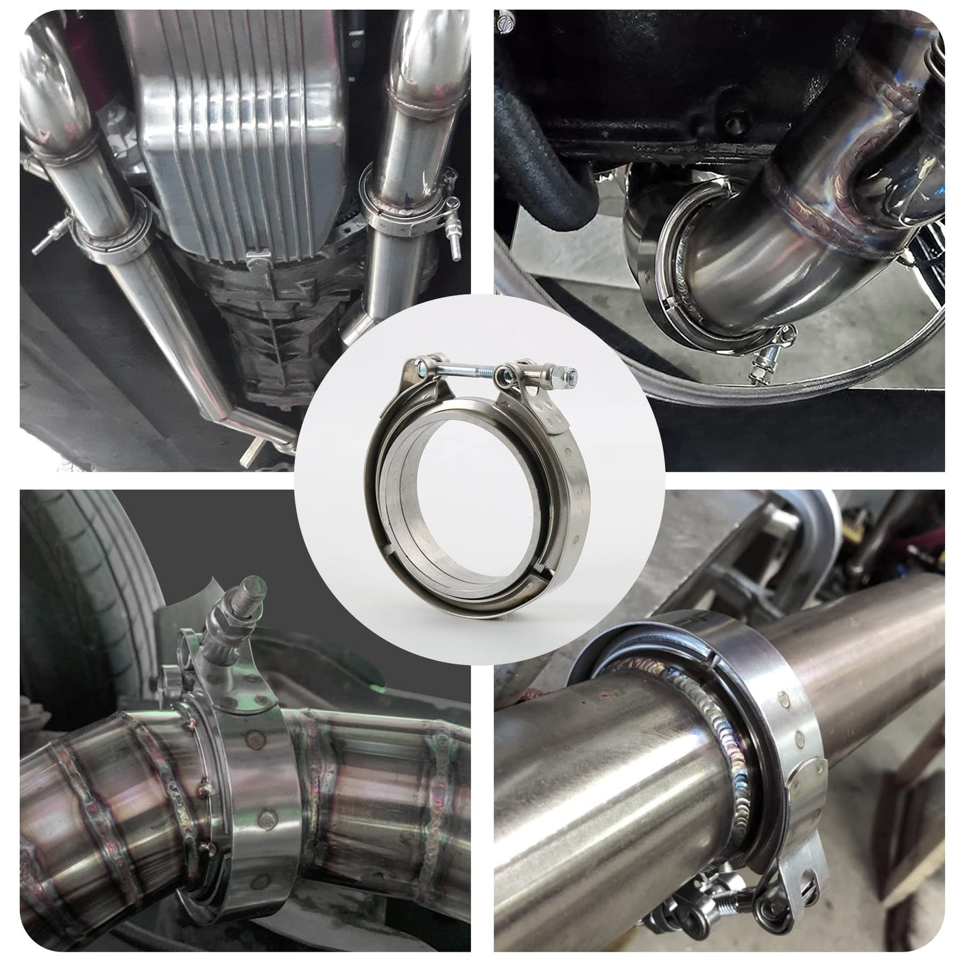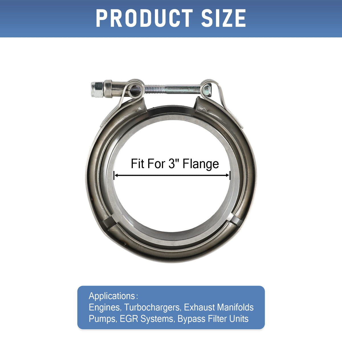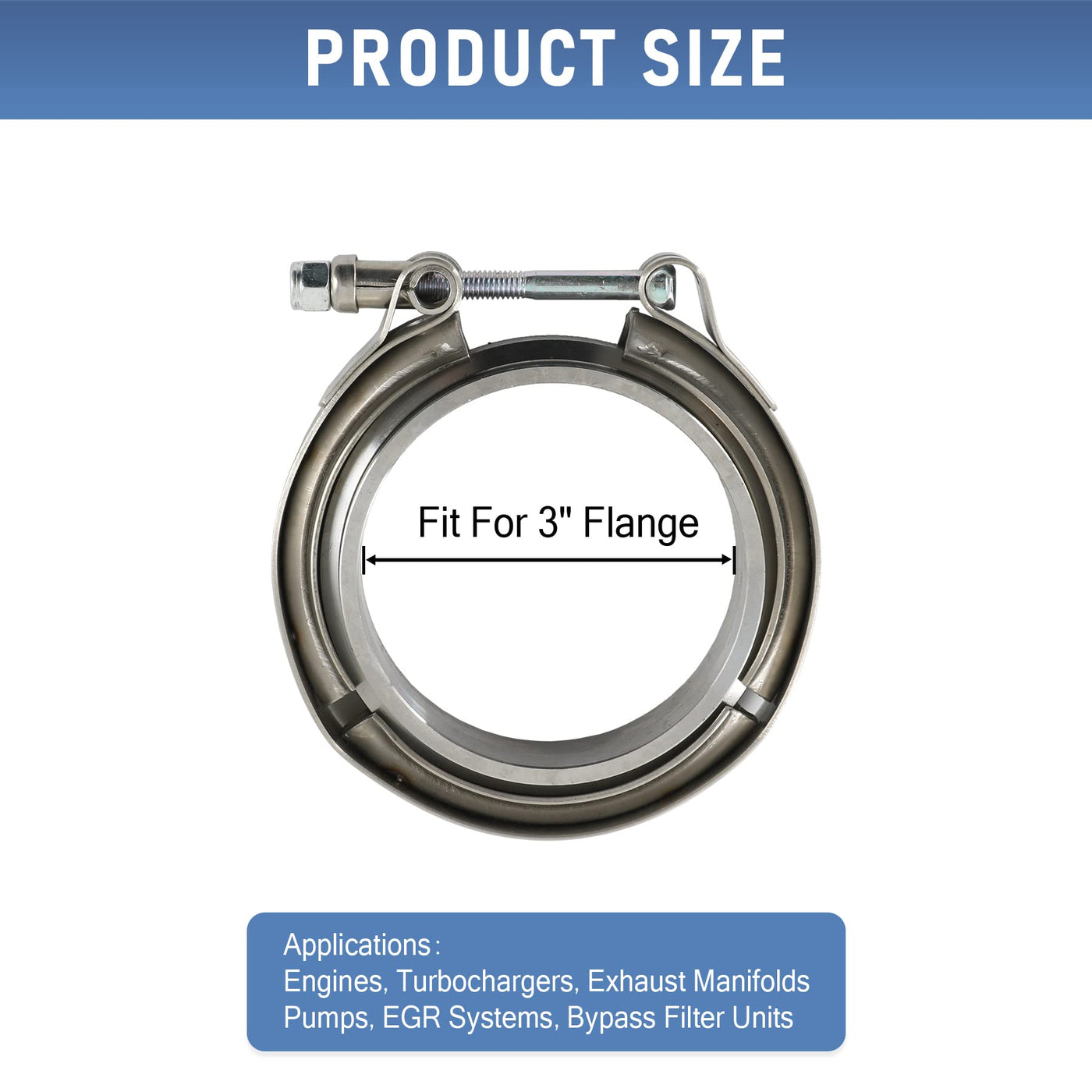 V-Band Clamps+Flange makes it easy to install and remove exhaust systems and turbo parts, such as downpipes, B Pipes and the like. Great for racers and tuners, these clamps make it easy to remove parts to gain access to vital componenets easily as there are no hard hard to reach bolts or special tools needed. Simply undo the clamp and you can remove the component easily Application Universal one 100% Brand new Made of Stainless Steel 3'' Inner Diameter One order include 1x clamp 2x flanges Exactly Same as the Picture