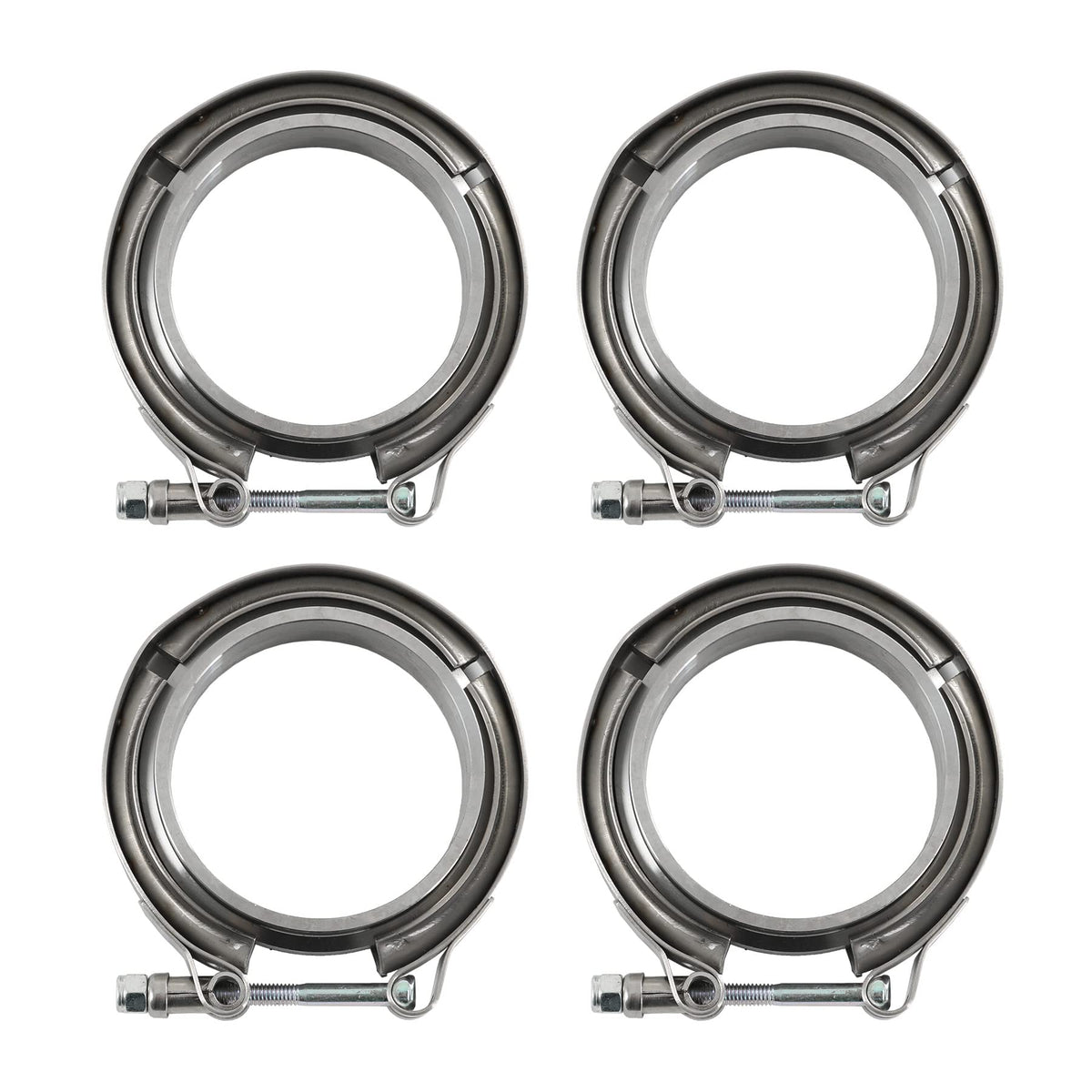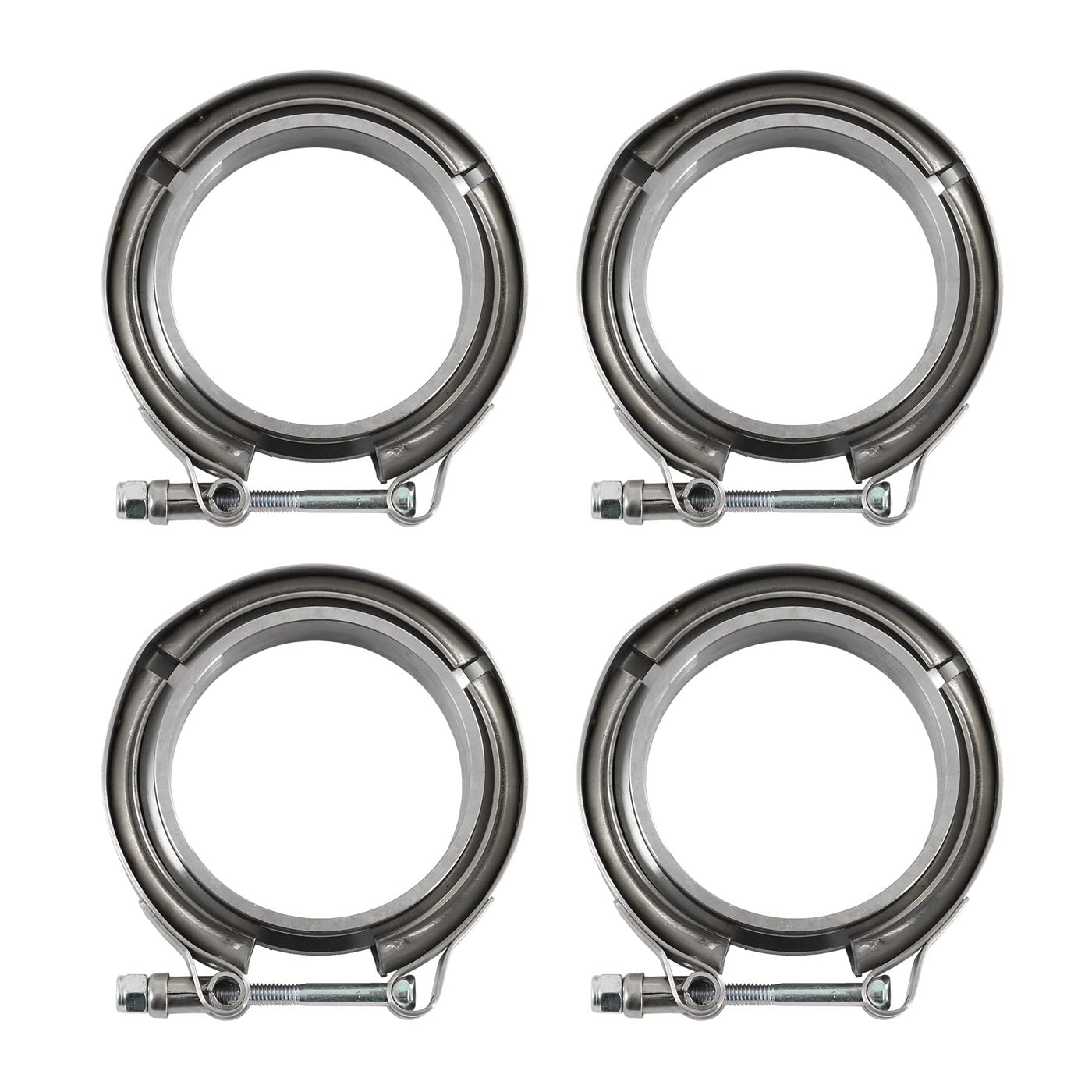 Jdmspeed New 3 V-Band Flange Clamp Kit With Ridge 4 Pcs Stainless Steel Replacement For Exhaust Downpipe (4)