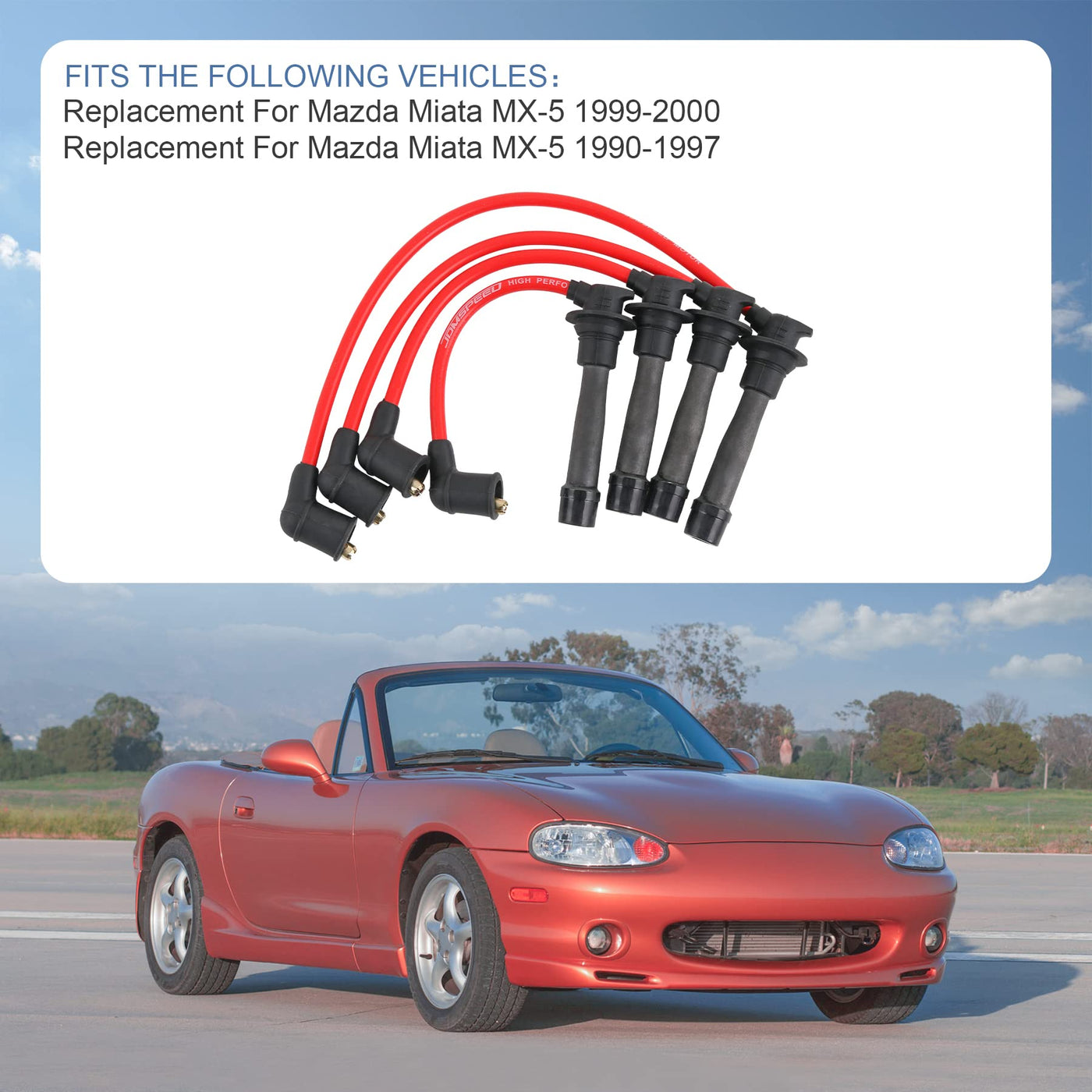 JDMSPEED New Red Ignition Spark Plug Wires Set Replacement for Mazda Miata MX-5 1.6L 1.8L Engines 1990-2000 10.2mm Replaces B61P